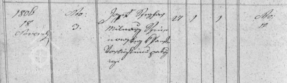 18. 11. 1806 svatba mlynáře Josefa Šejhara.
