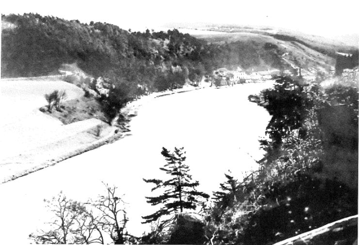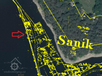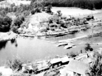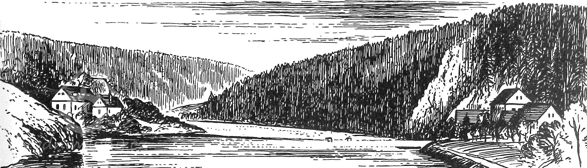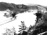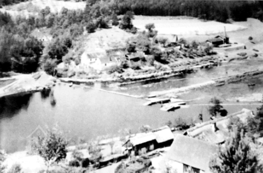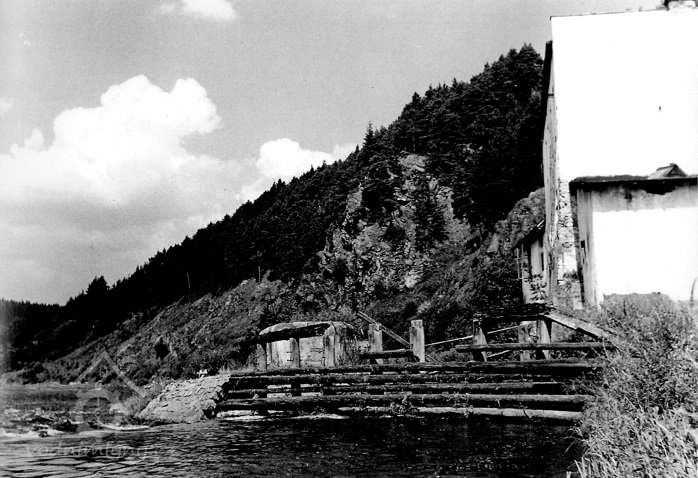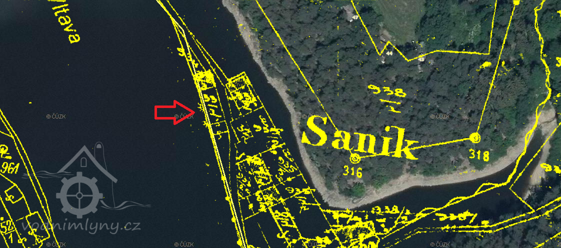 Zaniklý mlýn na pravém břehu Vltavy, zatopen Orlickou přehradou.
