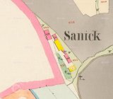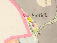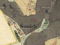 Létha 1607 v pátek po svatém Duše (Duchu) stal se trh mezi Janem a Vácslawem vlastními bratřími Sanickými prodávajícími z jedné a Vácslavem Kazymaurem kupujícím z strany druhé a to takový, že jsou oni svrchu psaní dva bratři Jan a Vácslav mlejn slove Sanický při řece Vltavie ležící svůj Vácslavovi Kazymaurovi s diedinami, lukami, kopaninami a jež k tomu náleží prodali za sumu 112 s těmito svršky a na dobrým níže psaným totiž: ..?.., palici železnou 1, hut železnou 1, sekyru 1, následuje výčet věcí, slovům nerozumím, co ke dvěma mlýnům náleží železnou stoupu 1, kamen mlýnský 3, lodi 1, pytlíky 2, obilí jest ..?.. jakého na týž pole vyseto apán Bůh naděliti a zlýho povětří zachovati ráčí, to vše na na pole ..?.. přiváti budou, za kterýžto mlejn Vácslav Kazymaur ihned závdavku jest položil a dal 102, ostatních pak 10 majíc mezi sebou tu smlouvu být ..?.. do sv. Havla, aby oni bratří míti mohli, pakliže se z téhož mlýna tíž bratři dřívejc hnuli a odstěhovali, téhož on Vácslav Kazymaur povinen jest a se zavazuje ta ..?.. 10 a hned mu hotově kdež nalézati bude dáti a odvésti. ..?..pak sečení trav na lukách a neb sžínaný jich ..?.. svrchu psaný bratří vymínili sobie trávy na kopaninách buď na seno nebo jiné koliv potřeby ..?.. budou, co se pak jiných luk a ..?..dotejče v to Vácslavovi Kazymaurovi nižádným způsobem pokudž v témž mlejně byt svůj míti budou sahati nemají.