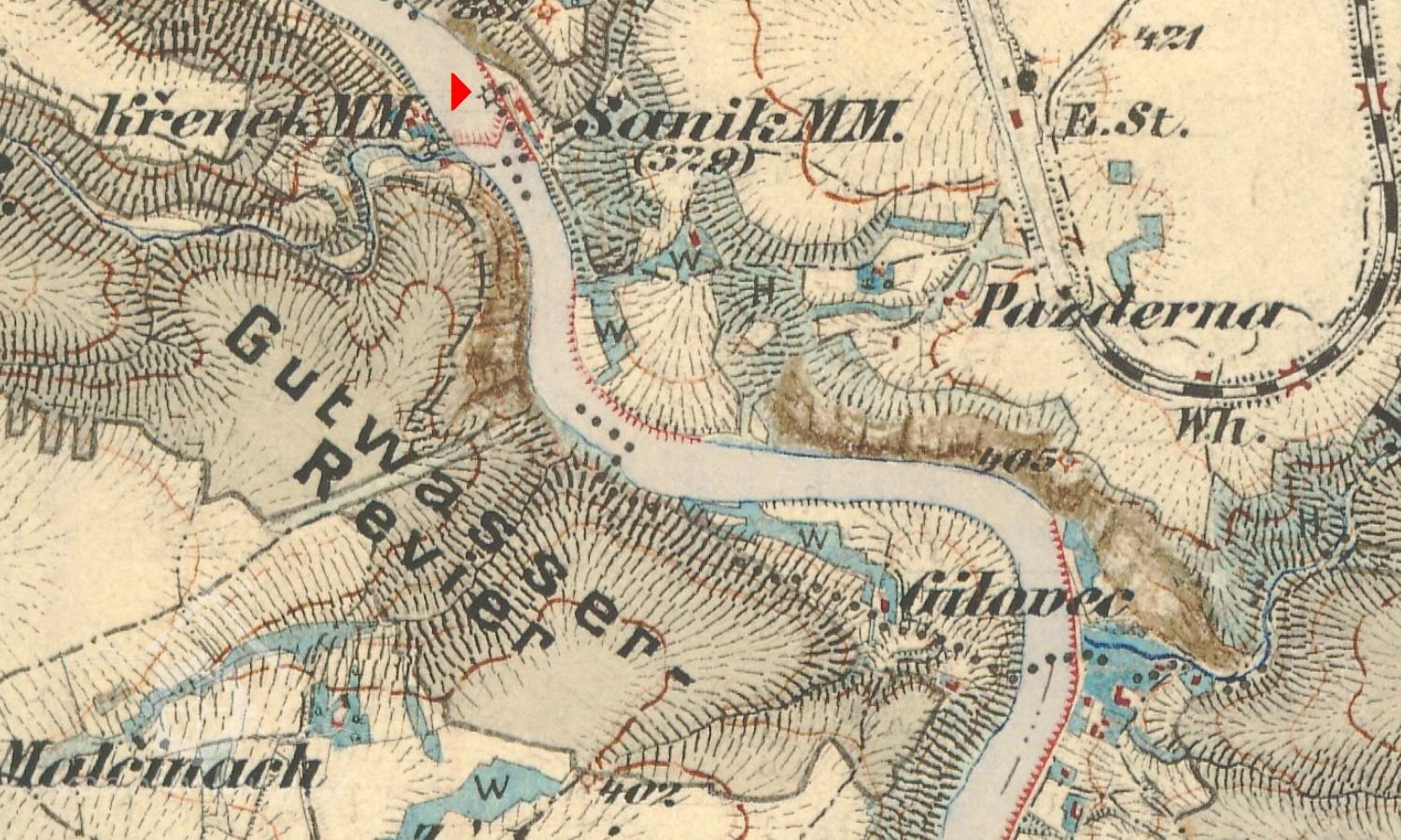 Popis1913 povolena instalace 2 Francisových turbín po 60 HP, nerealizováno, 1923 povolení propadlo