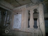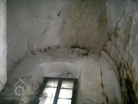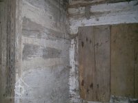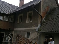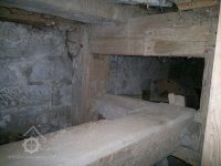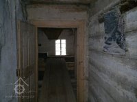 Prostor schodiště do patra má vysokou valenou klenbu s drobnou výsečí nad vchodem v patře. Jediná obytná místnost v patře je roubená, v interiéru omítnutá a obílená včetně stropu, do chodby je roubení s vymazávkami pouze obíleno.
