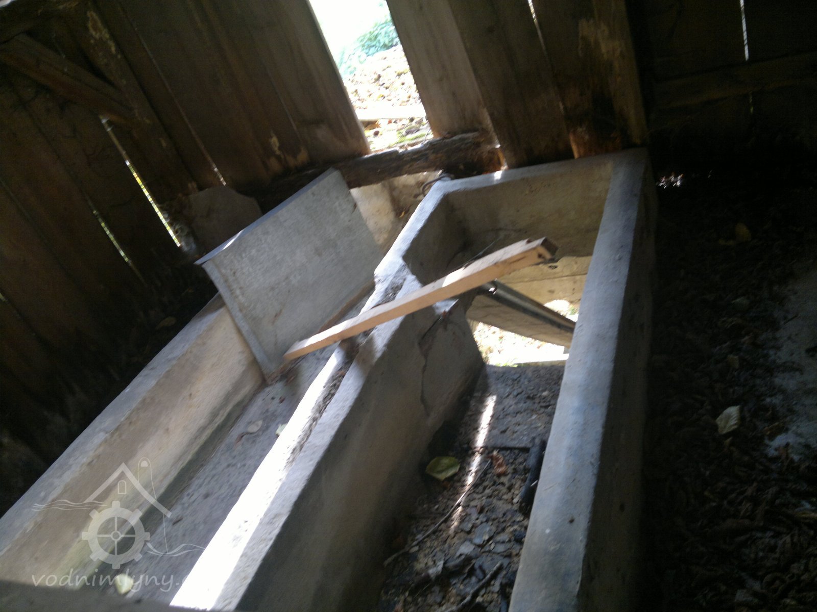 PopisBývalo zde celodřevěné vodní kolo na vrchní vodu otáčející se v betonové lednici. Dochován pouze fragment hřídele. Původně zde bývaly dvě vodní kola.
