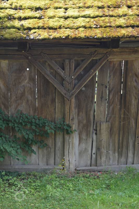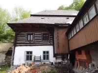 Archaická dřevěná kolna, náležející historicky ke mlýnu.