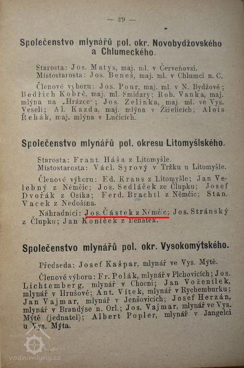 1899 - Jos. Částek, (Fr. Duška, Kapesní kalendář mlýnů česko-moravských (HŠ)