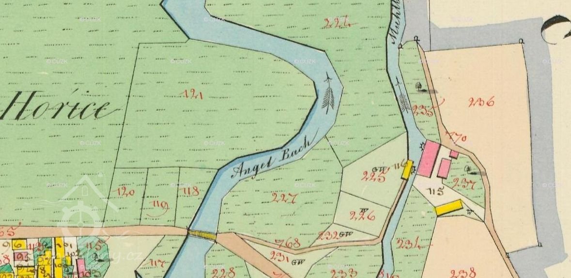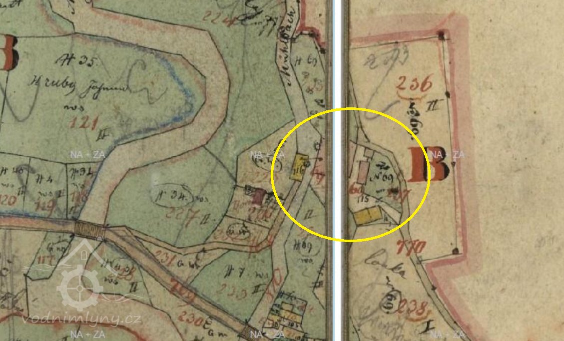 1757 Tereziánský katastr - panský mlýn o 3 kolech, 1 stoupě a 1 pile na stálé vodě