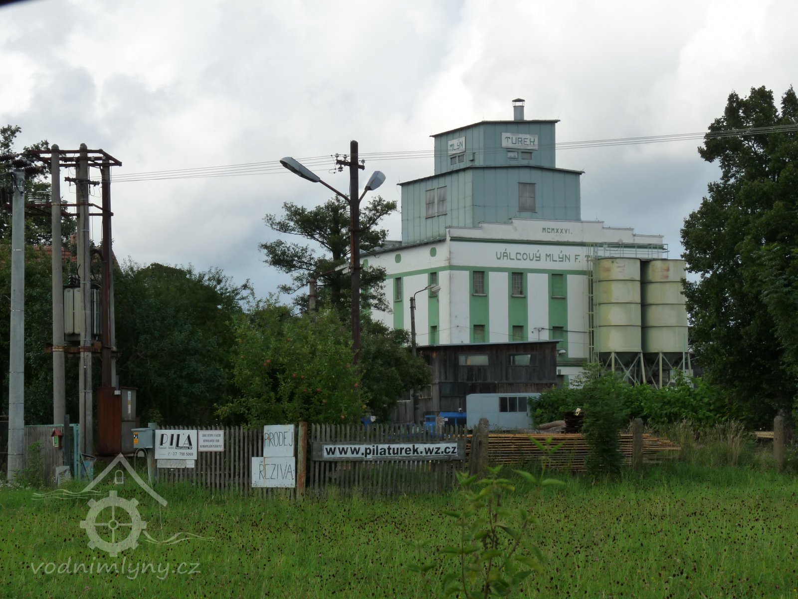 Mlýn s turbínou, který vyrábí elektřinu a mele