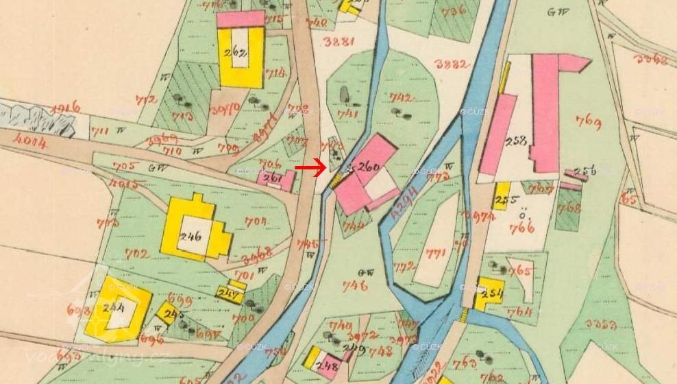 PopisV r. 1930 zde bylo 1 kolo na svrchní vodu, průtok 0,192 m3/s, spád 3 m, výkon 5 k.