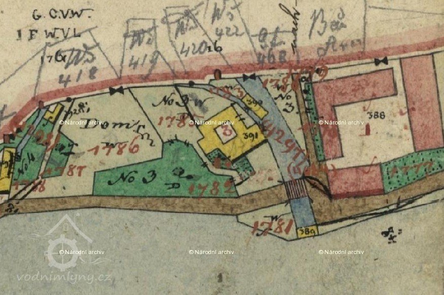 V r. 1930 byl majitel mlýna a pily Rudolf Kraus. Původní č. p. bylo 3.