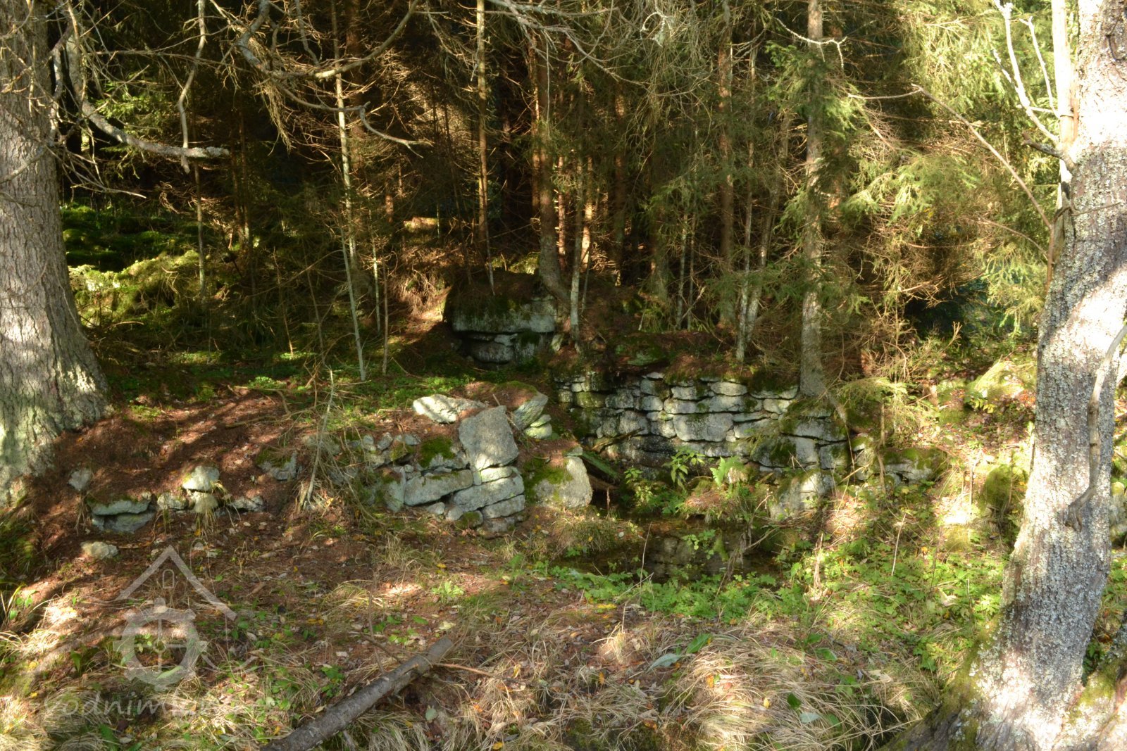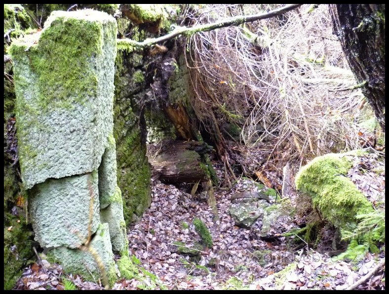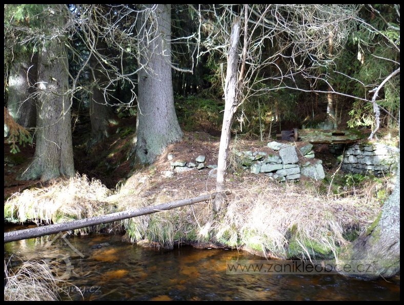 Zříceniny mlýna s pozůstatky vodních kol a nepatrnými pozůstatky zařízení. Mlýn zanikl v 50. letech 20. stol. v souvislosti s vybudováním hraničního pásma.
