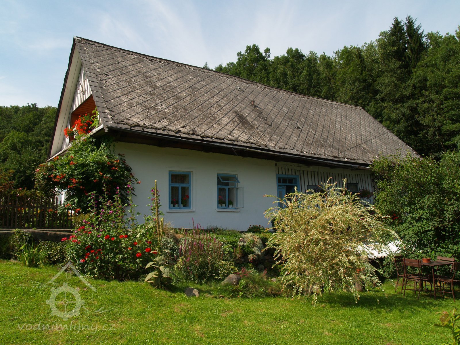 Romanticky umístěný mlýn s rybníčkem.