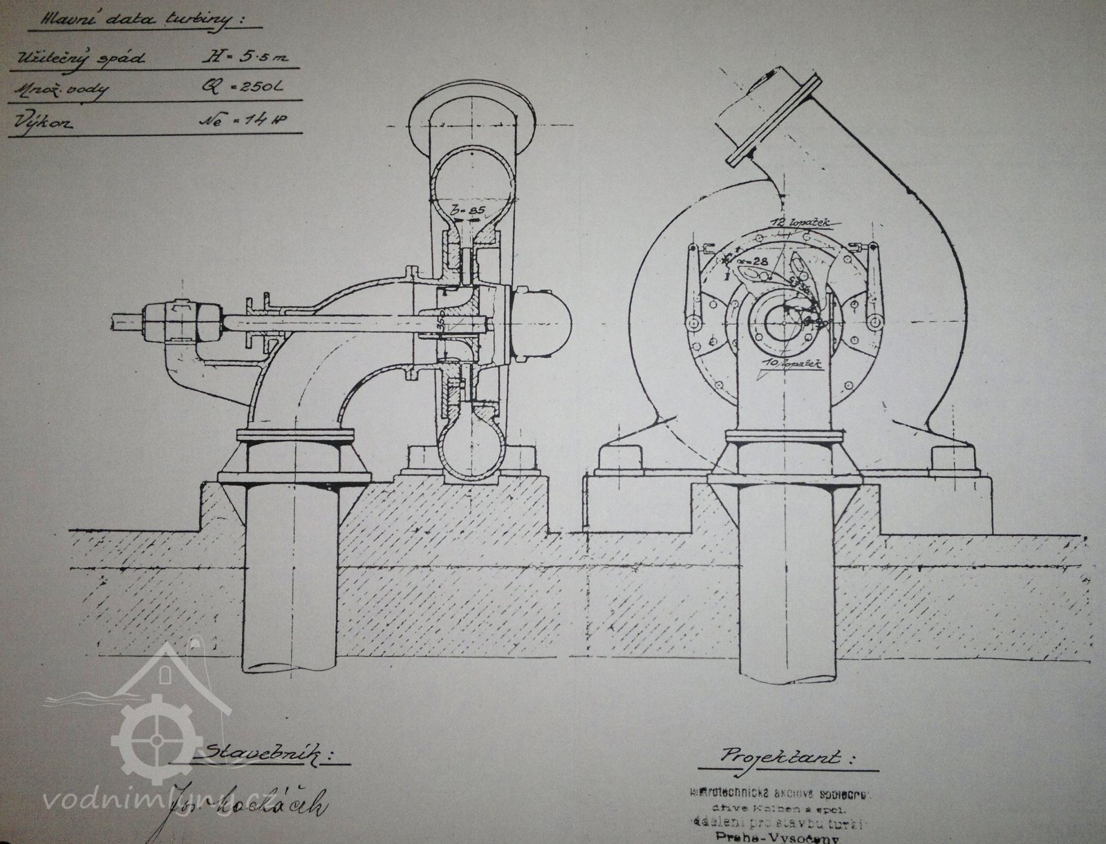 1. turbina > hltnost - 250 l/sec., 330 ot./min., max výkon - 13 KS