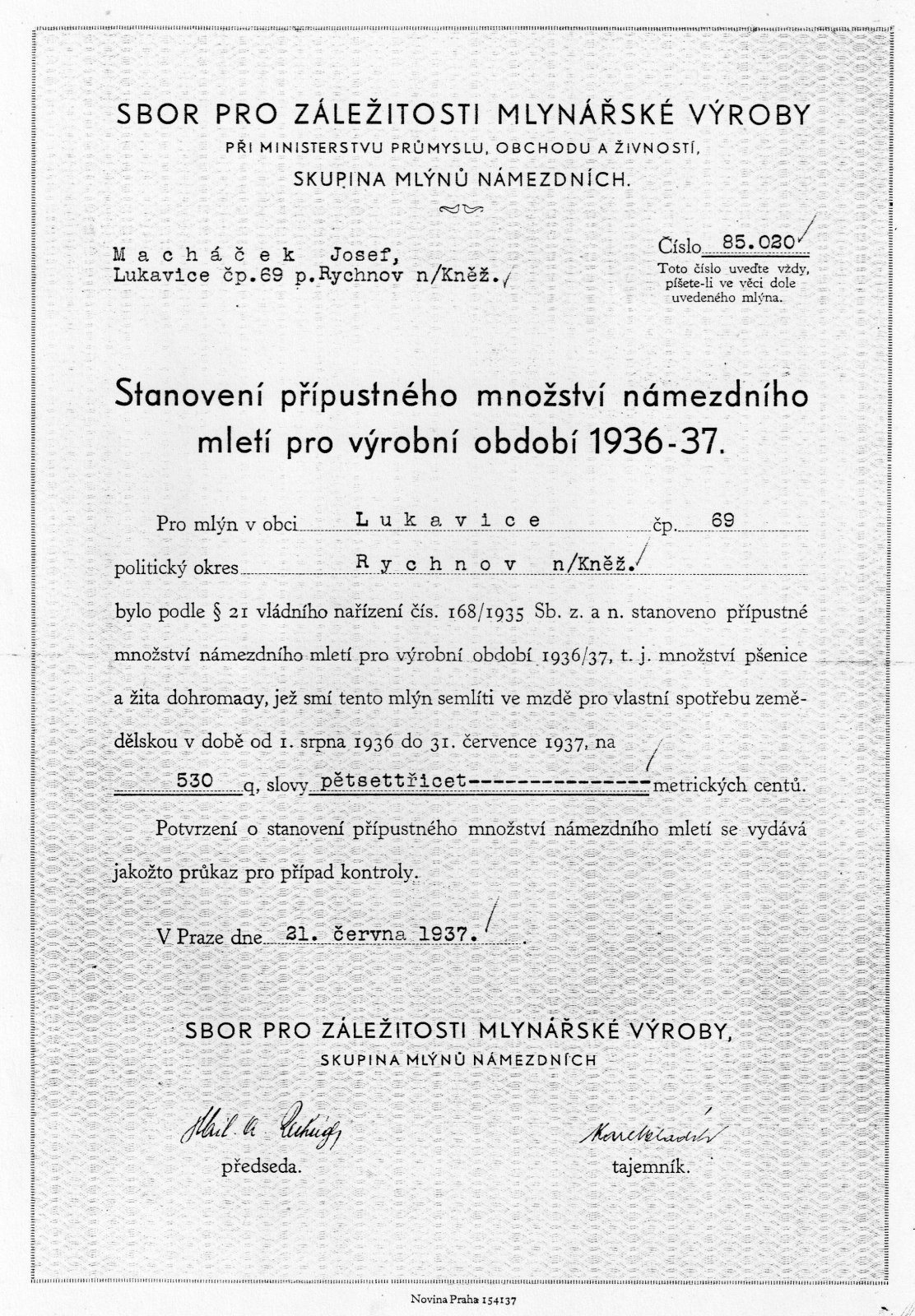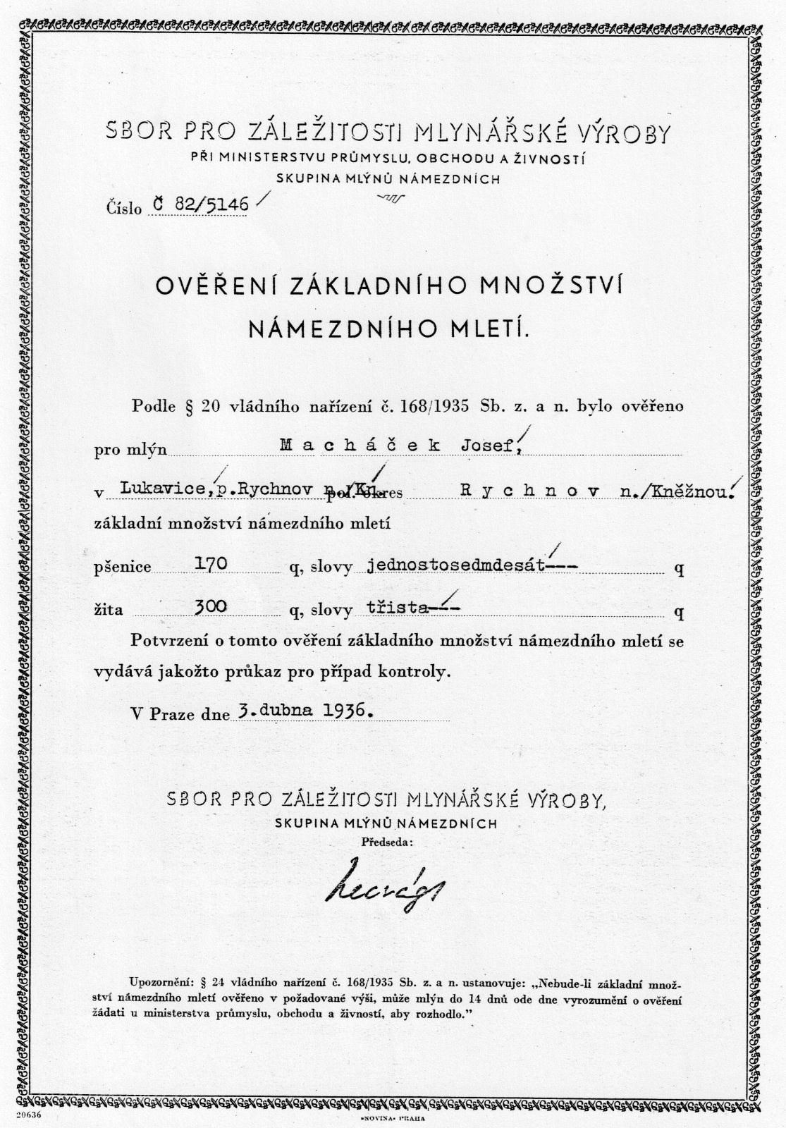 Další upřesněnímlynářské ústředí - informace + soukromý archiv dokumentů po mlynáři