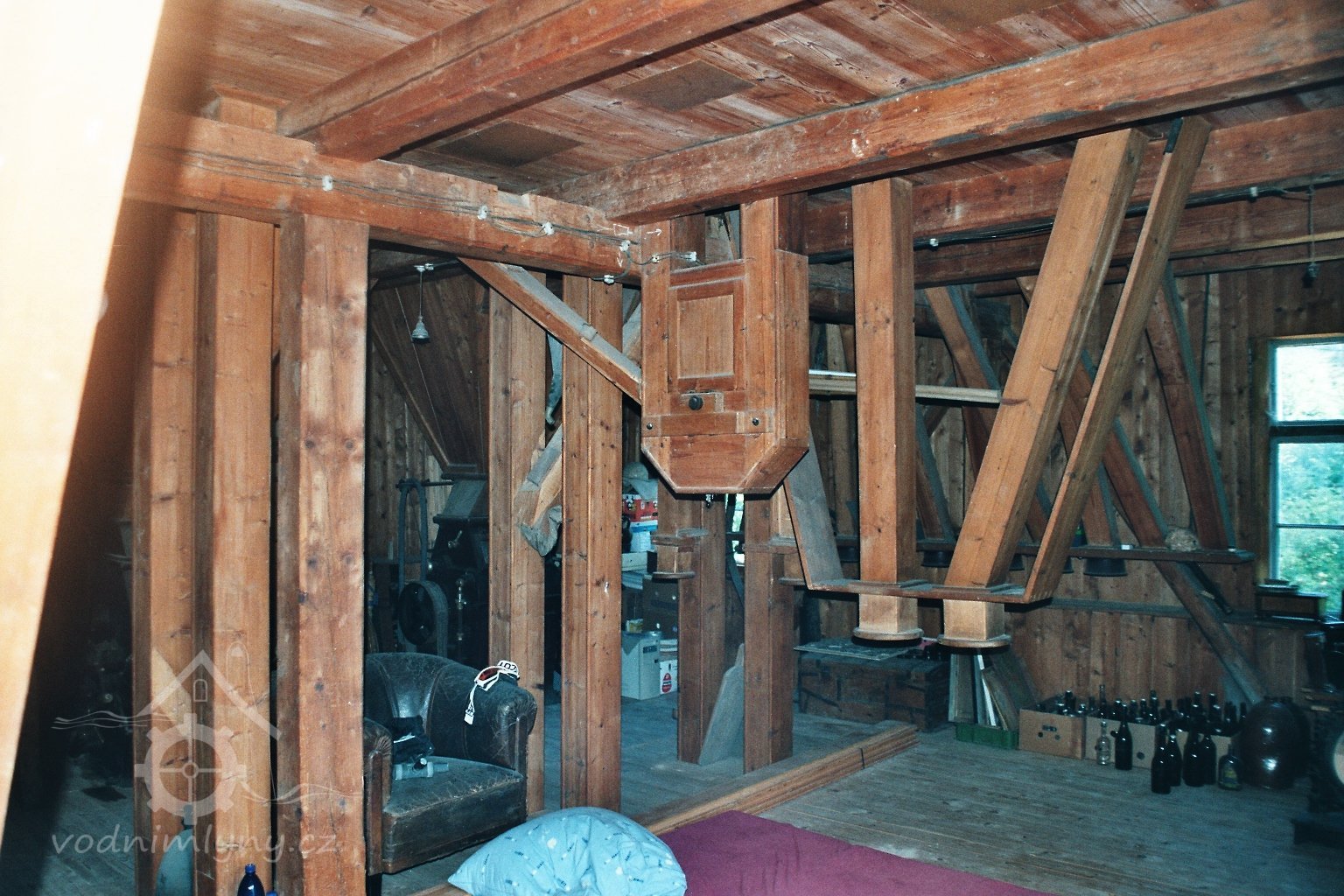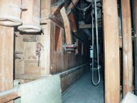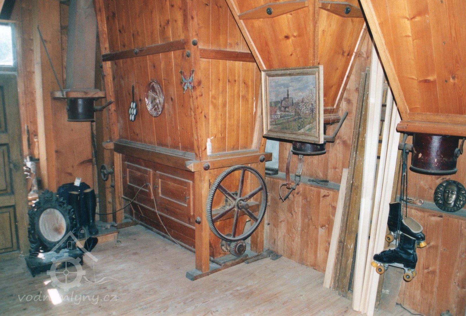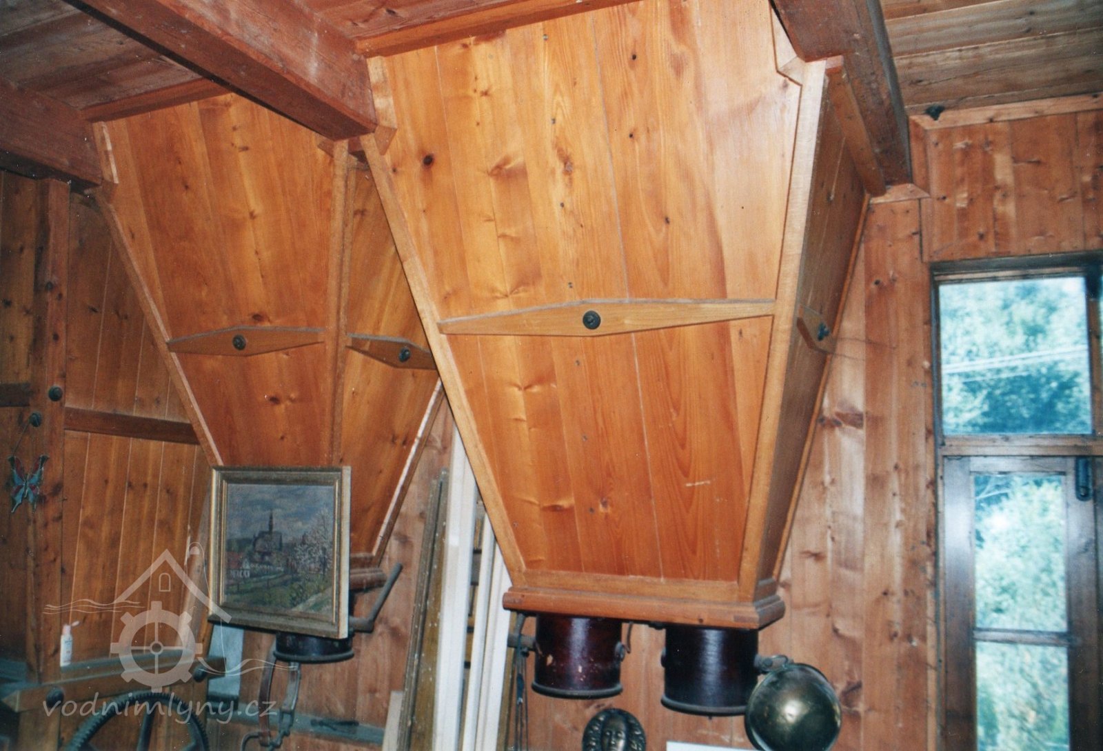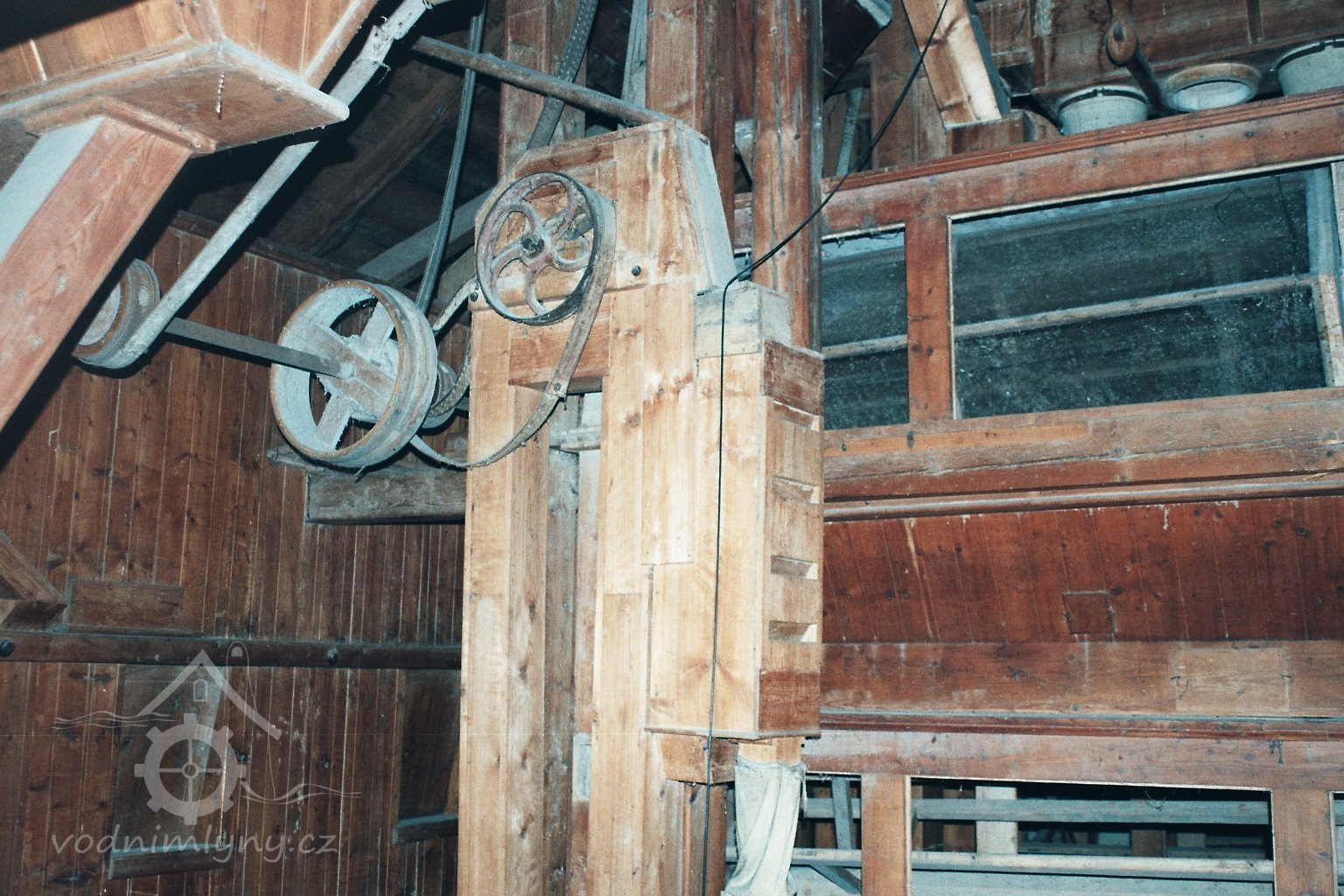 Podstřeší (podkroví) > Hlavy kapsových dopravníků, dopravníky jsou výroby Josef Macháček, Lukavice. Dále jsou zde šnekové dopravníky a zásobníky nad mlecí stolice, transmise.