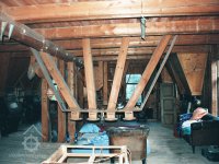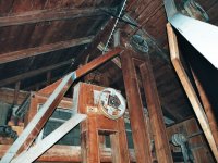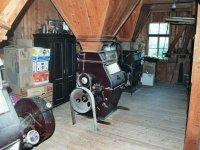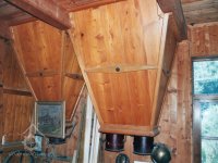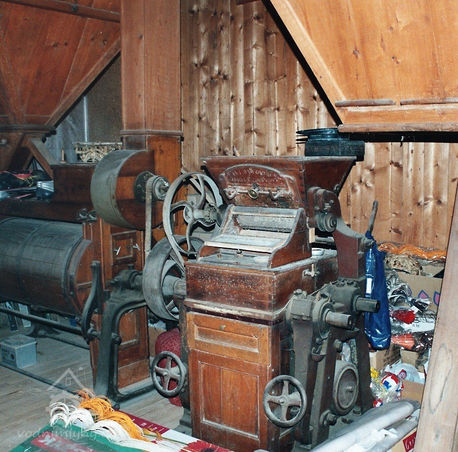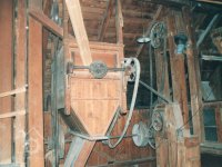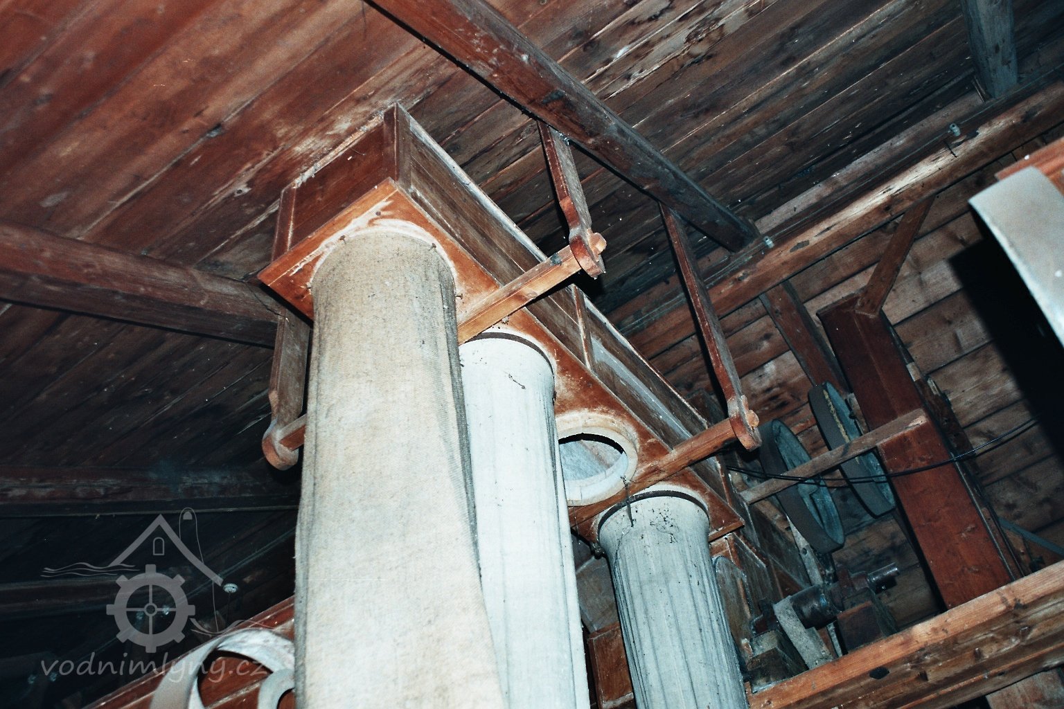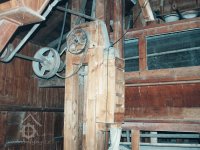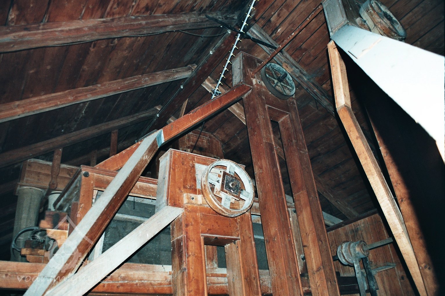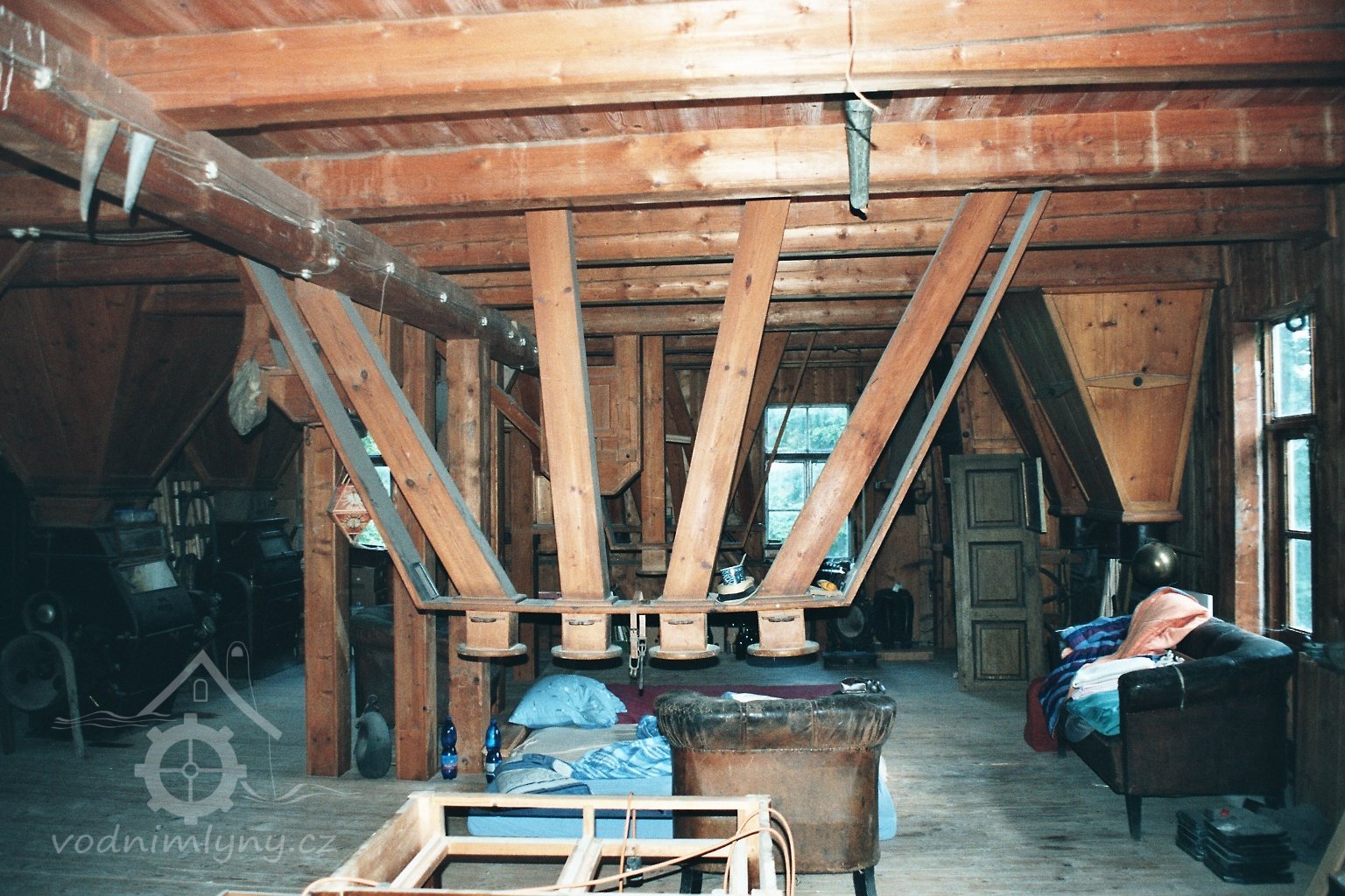 Podstřeší (podkroví) > Hlavy kapsových dopravníků, dopravníky jsou výroby Josef Macháček, Lukavice. Dále jsou zde šnekové dopravníky a zásobníky nad mlecí stolice, transmise.