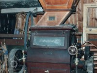 Prachový a hrudový vysévač s větrákem, výroba Josef Macháček – Lukavice, Ø 800 mm, délka 2000 mm, předčištění obilí.