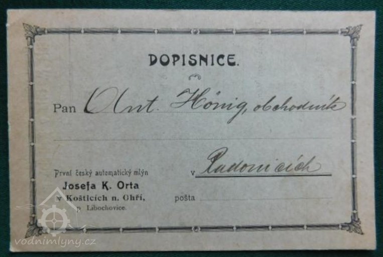 Mlynář Josef Karel Ort byl podnikavý člověk Pustil se do přestavby mlýna. Finanční krizi, zaviněnou překotným investováním, řešil odjezdem za výdělkem do Ameriky. Nebyl schopen splácet půjčky, jeho tchán mu odmítl pomoci a Josef před věřiteli doslova utekl. Původně pomýšlel v Americe zůstat a povolat tam i svoji rodinu. Jeho manželka však nakonec dlužné peníze dala dohromady, dluhy vyrovnala a Ort se vrátil do koštického mlýna. Po návratu modernizaci mlýna dokončil a ten se stal prvním českým automatickým mlýnem. Nahradil pohon šesti vodními koly turbínami, instaloval parní stroj, na světové výstavě v Paříži nakoupil moderní mlecí stroje, provozoval elektrárnu i pekárnu, které sloužily i potřebám obce Koštice. Od r.1902 mlýn poháněla jedna Francisova turbína, od r.1915 turbíny dvě. Koštická elektrocentrála poháněla nejen mlýn, ale zřídilo se i pouliční osvětlení v celých Košticích, mlýn dodával také elektřinu do domácností. Výpadky turbín později zajišťoval parní stroj.