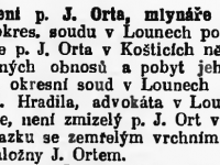 Po smrti mlynáře Josefa Orta 8. 4. 1927 majetek spravovala jeho žena Antonie. Poslední rekonstrukci koštického mlýna provedla v roce 1947 vnučka Josefa Orta Marie Loupalová nar. 1912 se svým manželem Josefem M. Blížencem.