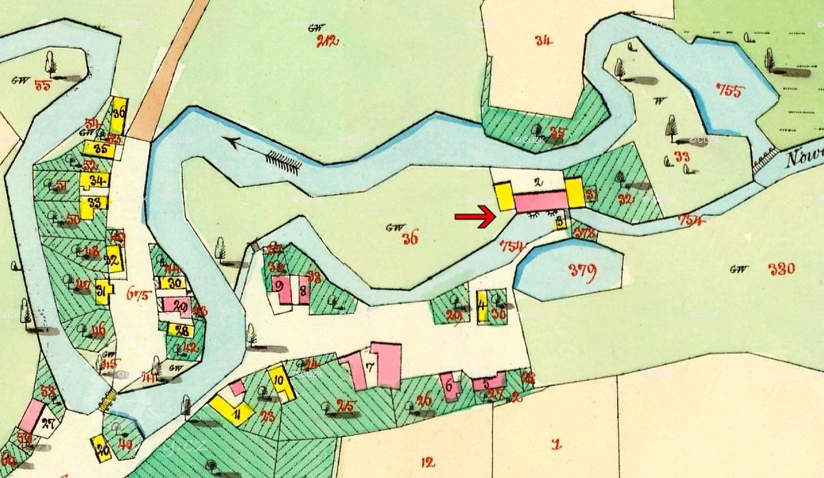 V roce 1930 zde byla 1 Francisova turbína, průtok 0,750 m3/s, spád 2,80 m, výkon 18,0 HP.