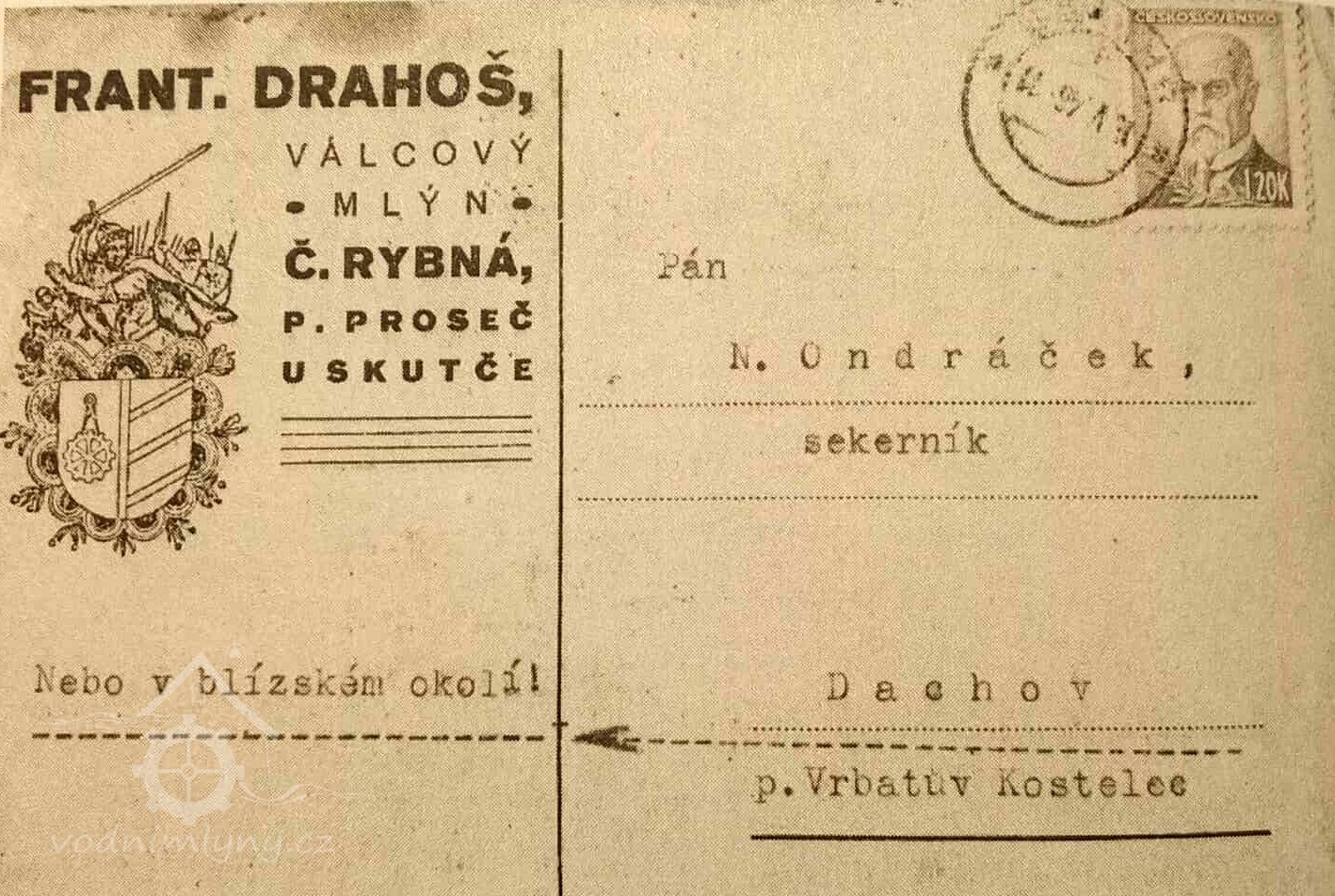 V roce 1930 je zde uváděn v seznamu vodních děl mlynář František Drahoš, mlýn.