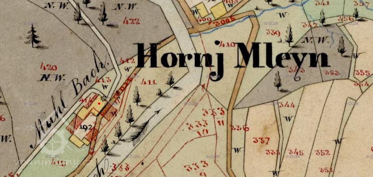 Není známo, ke kterému ze tří zdejších mlýnů patří zmínka z roku 1456, ...