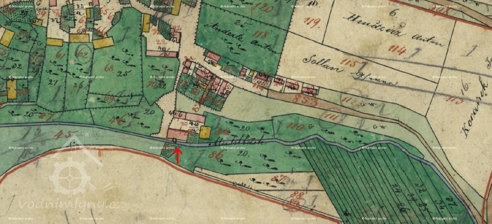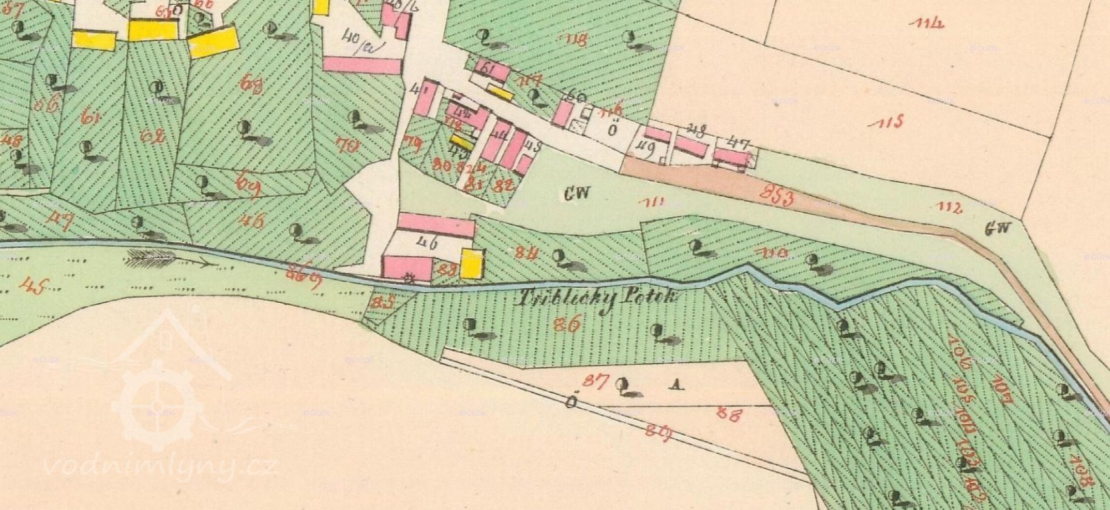 Popis1930: 1 kolo na svrchní vodu, hltnost 0,030 m3/s, spád 4,62 m, výkon 2,4 HP