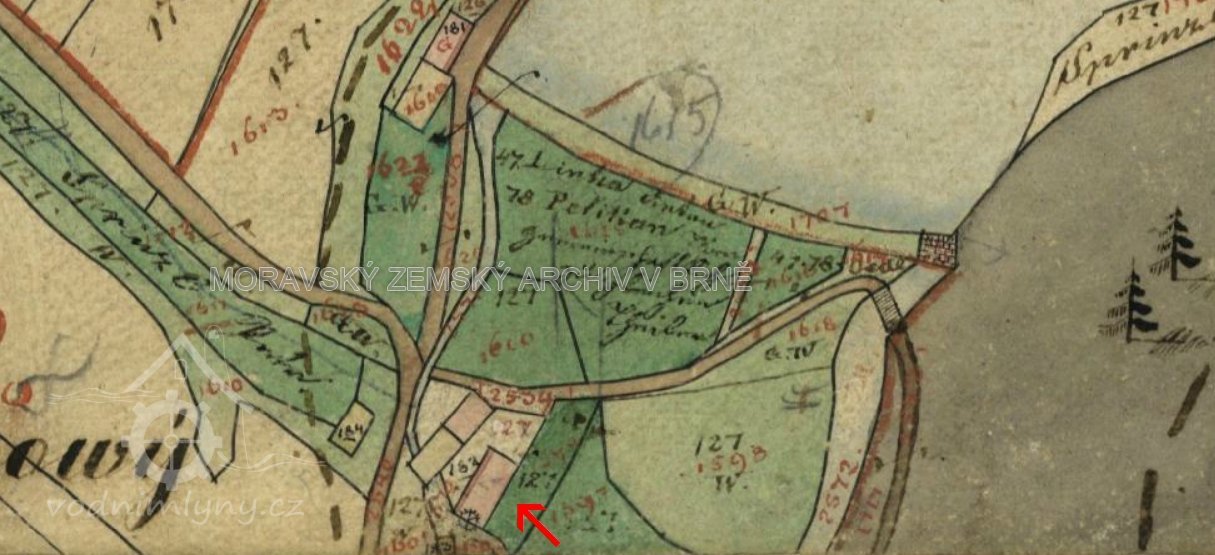 Popis1930: 1 kolo na svrchní vodu, hltnost 0,118 m3/s, spád 4,5 m, výkon 4,6 HP