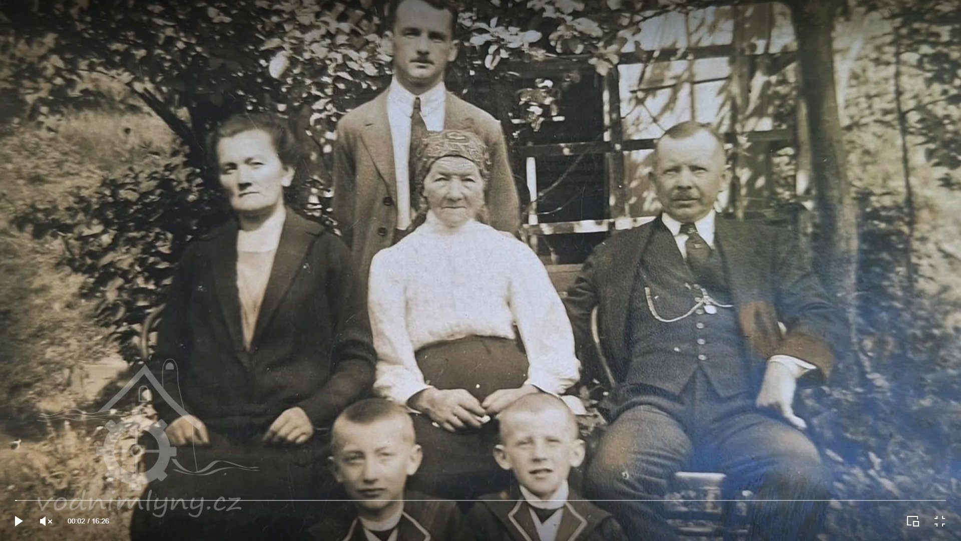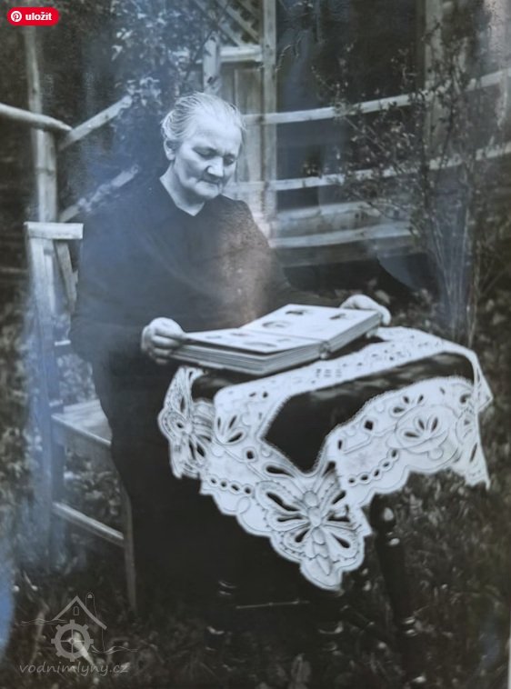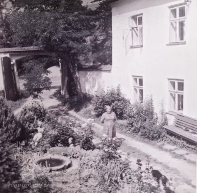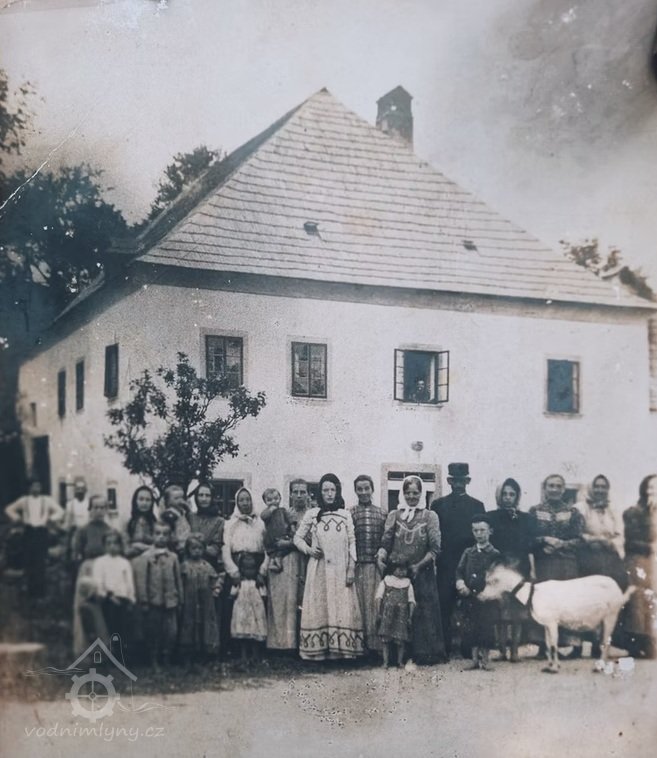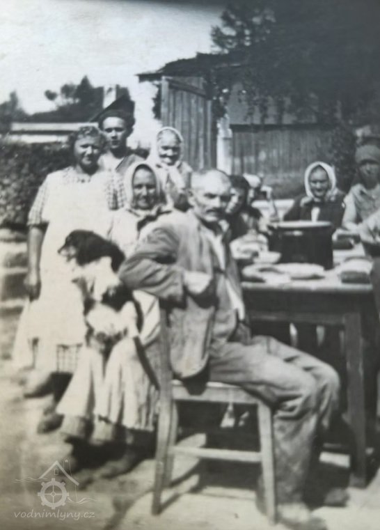 Pohled na mlýn a rodinu mlynáře, bez data, © JUDr. Josef Vospěl - archiv