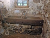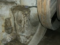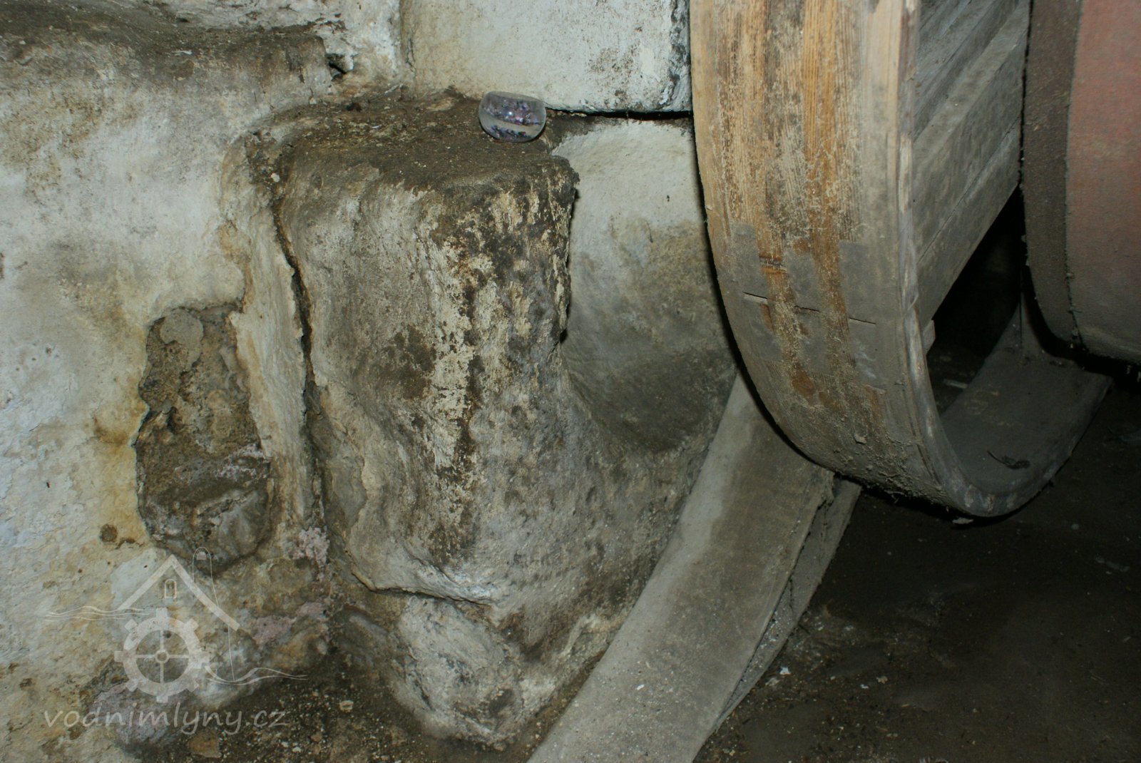 Rozpůlený kamenný štok ze stoupy použitý jako patka kamenného sloupu mlýnské hranice, 2010, © Urbánek, (Prvky na obrázku: mlýnská hranice s kamennými prvky, stoupa)