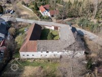 ohradní zeď s branou, v pozadí stodola, pohled od SV., 02 2007, © Zdenka Prokopová
