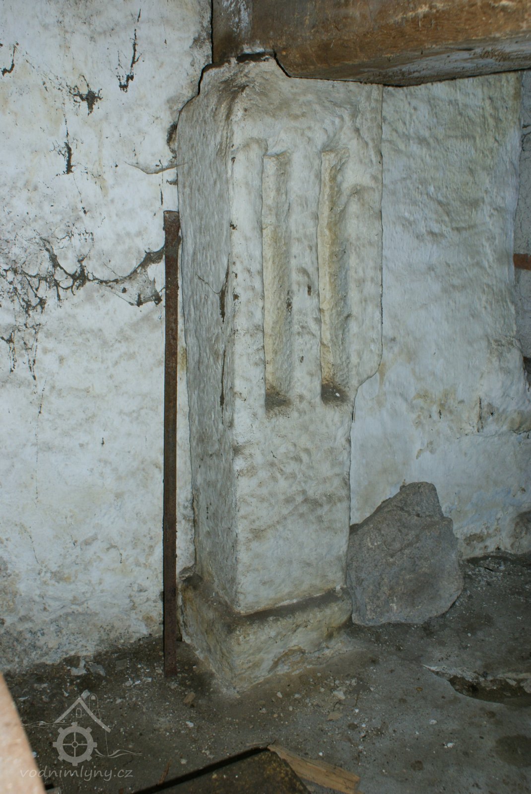 Kamenný sloup mlýnské hranice s drážemi pro dvě příčky lehčení, 2010, © Urbánek, (Prvky na obrázku: mlýnská hranice s kamennými prvky)