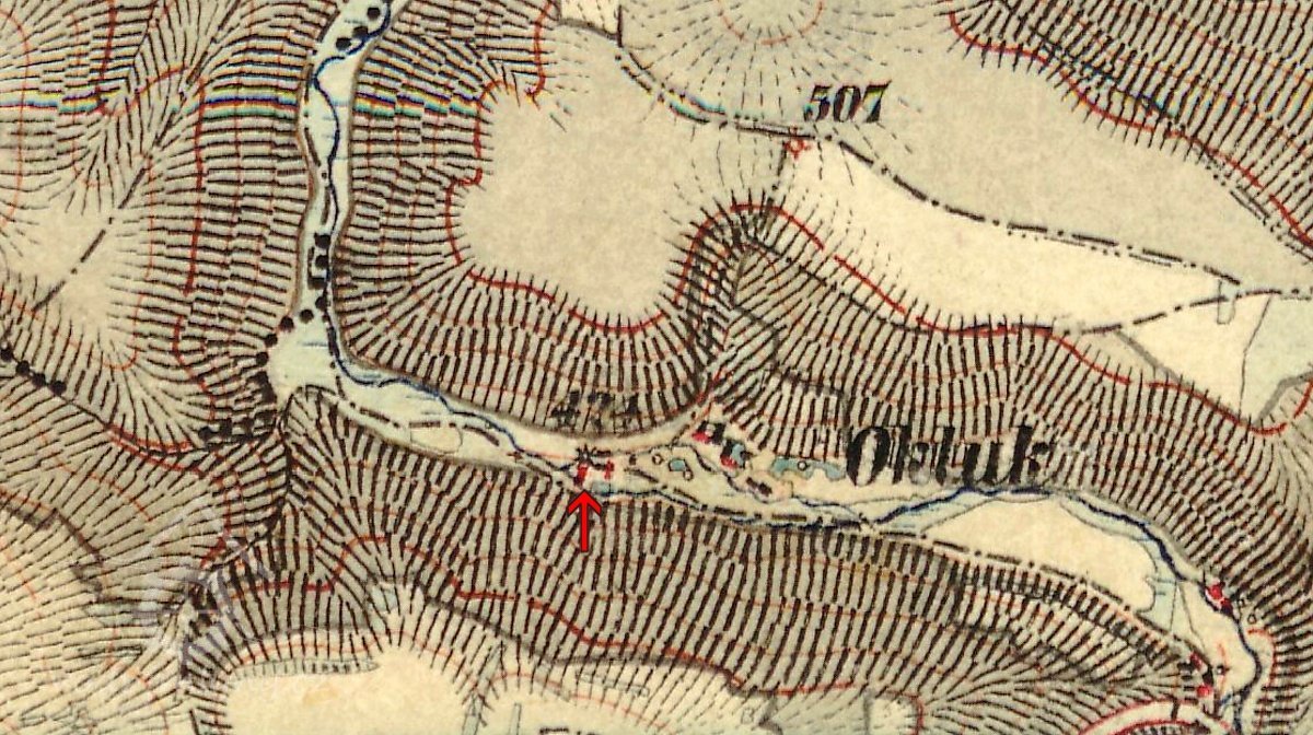 Malé Hradisko – Okluky – č. p. 1 (od r. ca 1873), dříve č. p. 41 nebo 42 (v 18. stol.)