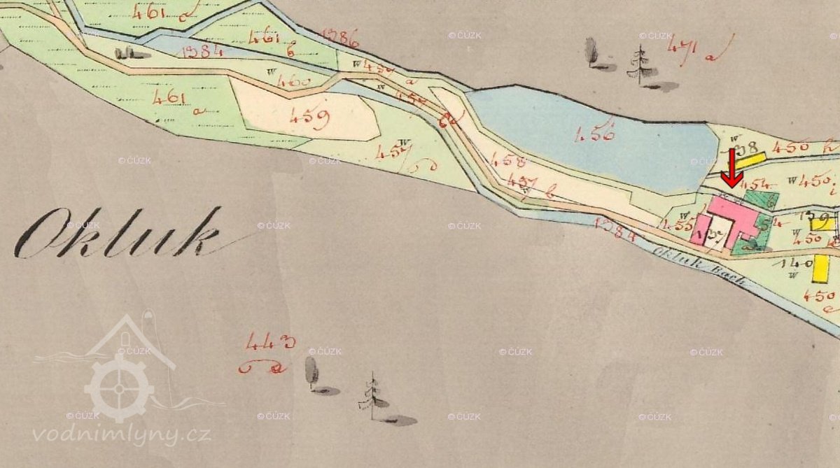 1854 – Libor Komárek (1814-?), žena Franziska Lutterová (1816) z Horního Štěpánova. Libor se narodil na mlýně v Malenách, po přestěhování rodičů do Úsobrna dělal mlynáře v Jaroměřicích, pak zde v Oklukách