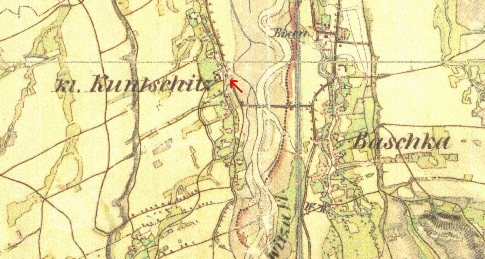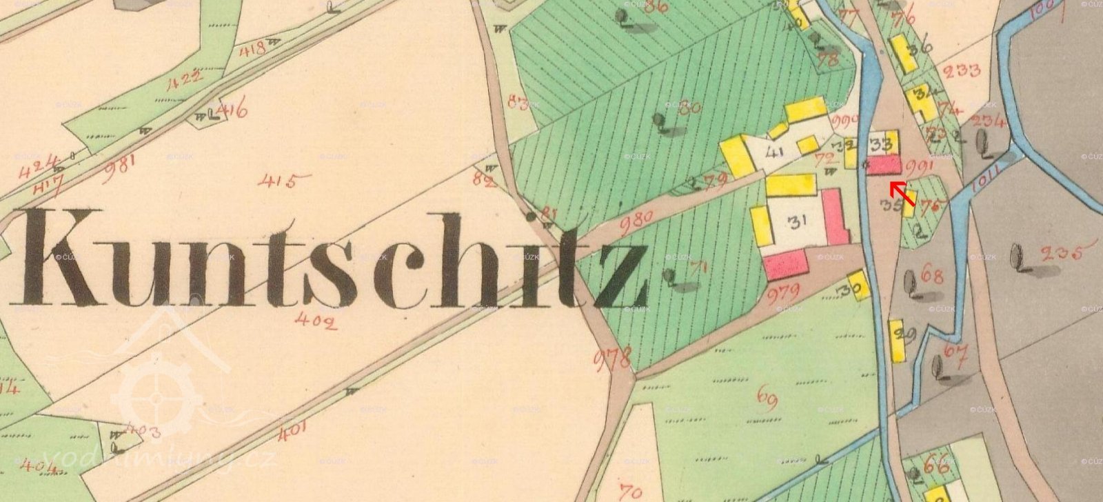 Poslední kunčický fojt Jan Pavel Pittl (zvaný Pytel), bydlící na č.p. 18, dne 18. prosince 1873 přenechal mlýn své dceři Františce a jejímu manželovi Teodoru Schmidovi a přidělil k tomuto 15 měřic pozemku z poušti a to za čp. 9 ležící od potoka až pode břehy.