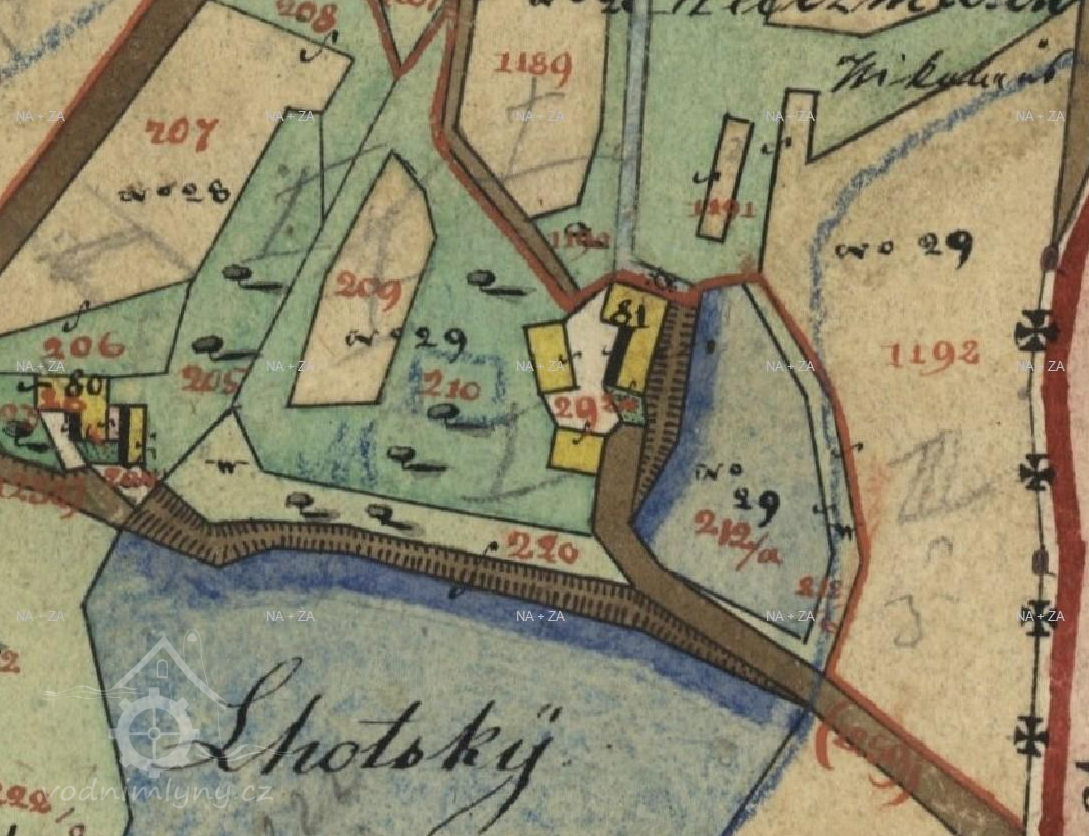1651 Soupis poddaných podle víry: mlynář Tobiáš Brandejský (30 let), manželka Alžběta (25), synové Martin (14) a Pavel (11), všichni katolíci