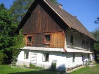 Roubený patrový mlýn trojdílného půdodorysu s mlýnici ve třetím dílu.