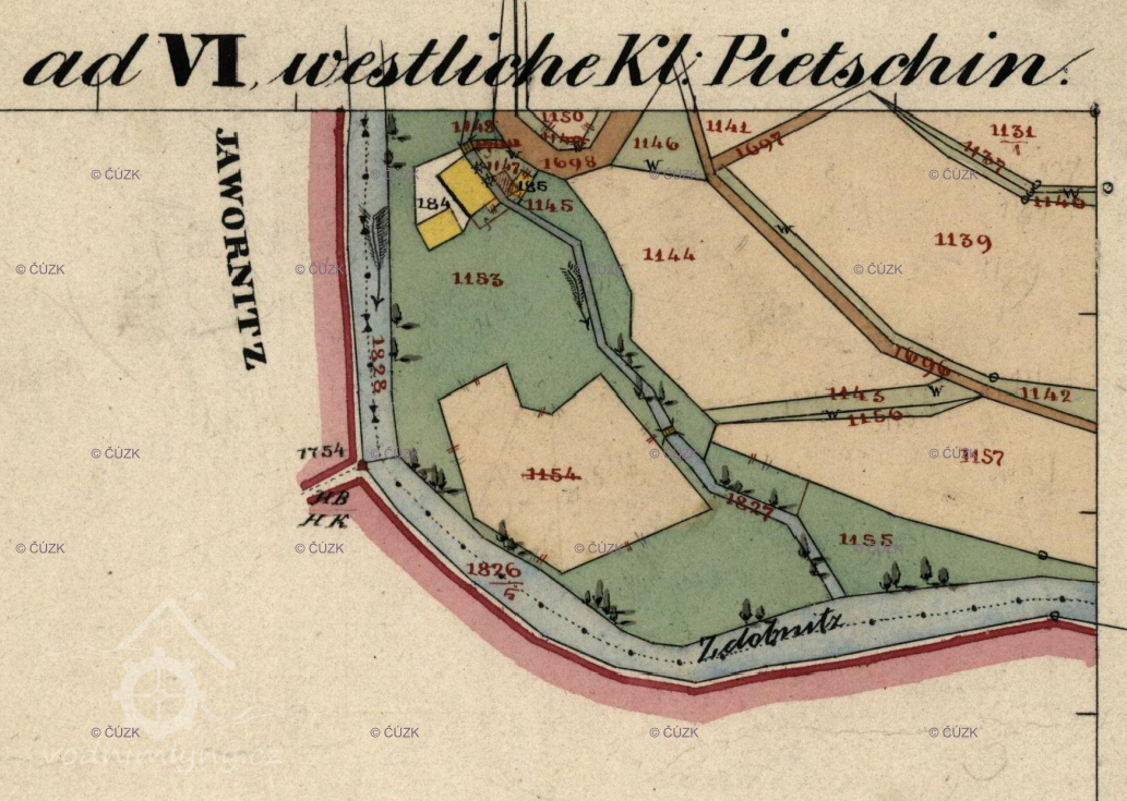 Jan Křen ml. zpustlé mlýniště přestavěl nákladem 50 zl.. celý objekt šacován na 131 zl. 40 kr.
