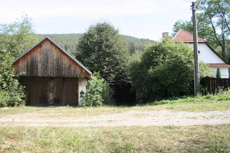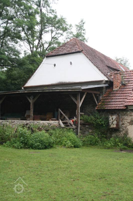 Samostatně stojící příčně průjezdná stodola doplňuje areál a společně s objekty chlévů a maštalí pro dobytek dokládají podobu hospodářské části areálu vodního mlýna z počátku 19. století.