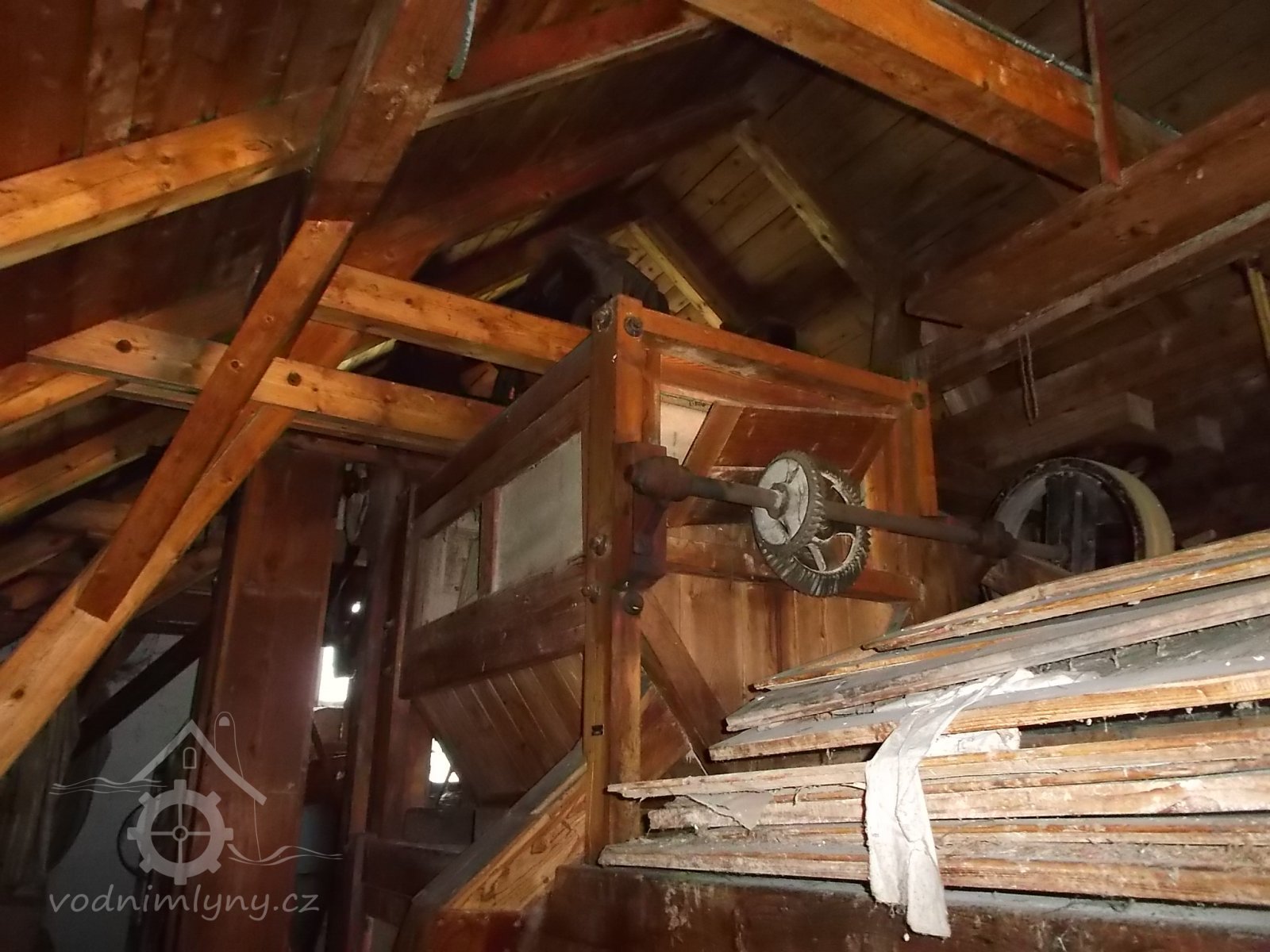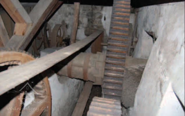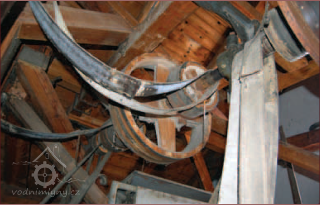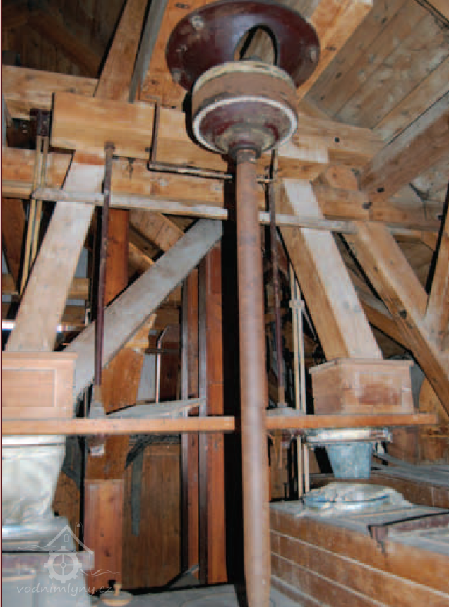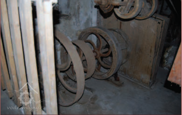 Převody od vodního kola, 2013, © Vodní mlýny na Frýdecko-Místecku, (Prvky na obrázku: transmise, řemenice, převody - transmisní hřídele s řemenicemi (výrobek průmyslový i řemeslný))