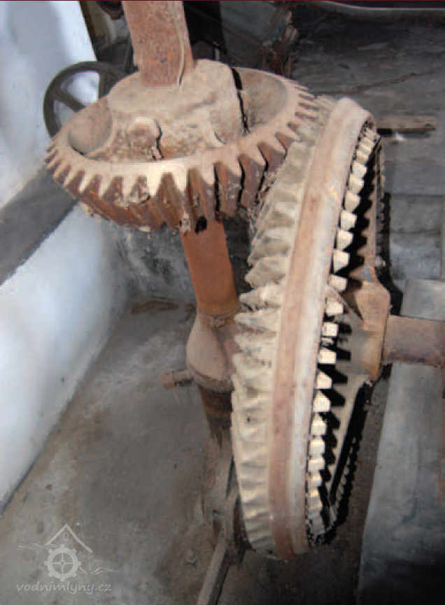 Pastorek, 2013, © Vodní mlýny na Frýdecko-Místecku, (Prvky na obrázku: transmise, řemenice, převody - paleční kola, pastorky a cévníky (řemeslný výrobek))