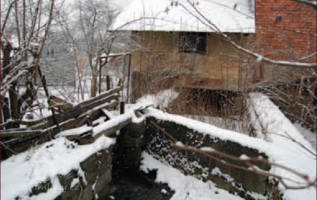 Vtok náhonu do mlýna, 2013, © Vodní mlýny na Frýdecko-Místecku, (Prvky na obrázku: náhon, lednice)