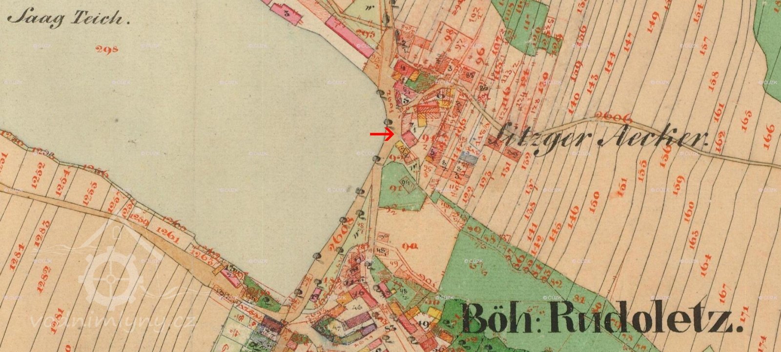Mlýn se nachází asi 500 m od Rudoleckého zámečku