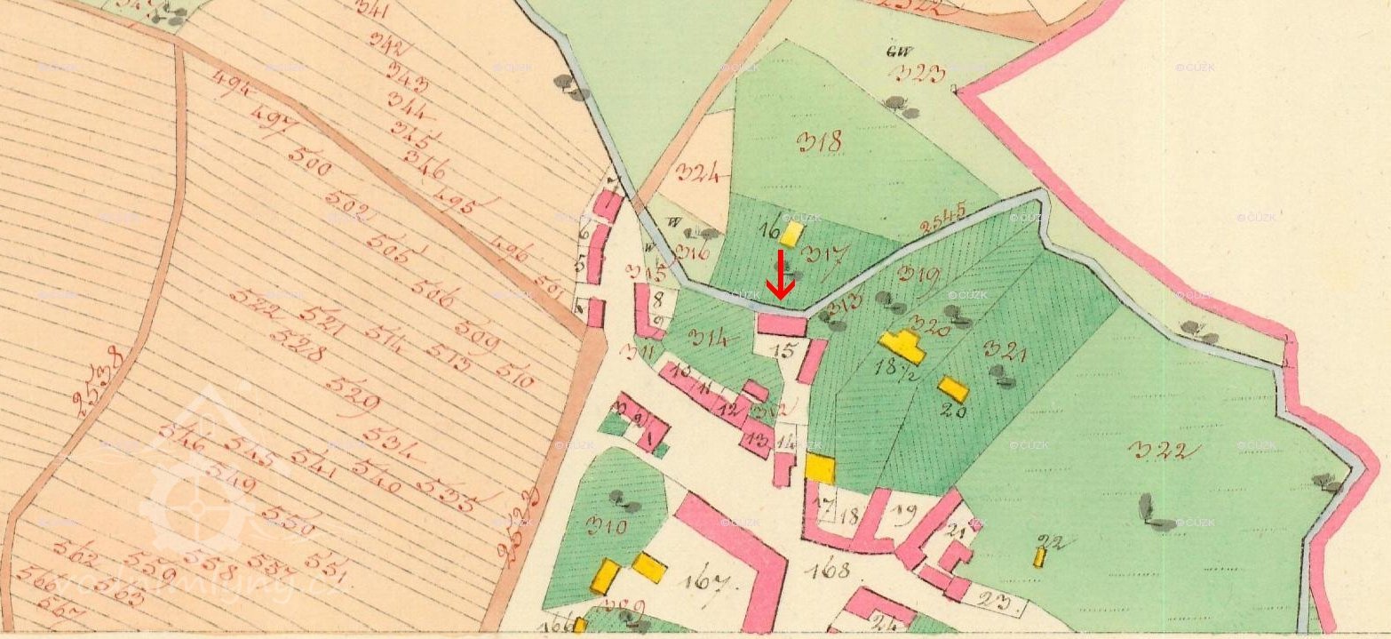 První písemná zmínka je z r. 1590, později vystavěná stodola nese dataci r. 1885