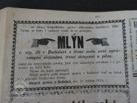 V 5.6.1874 nabízen v týdeníku ČESKÝ JIH  k pronájmu.