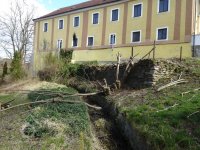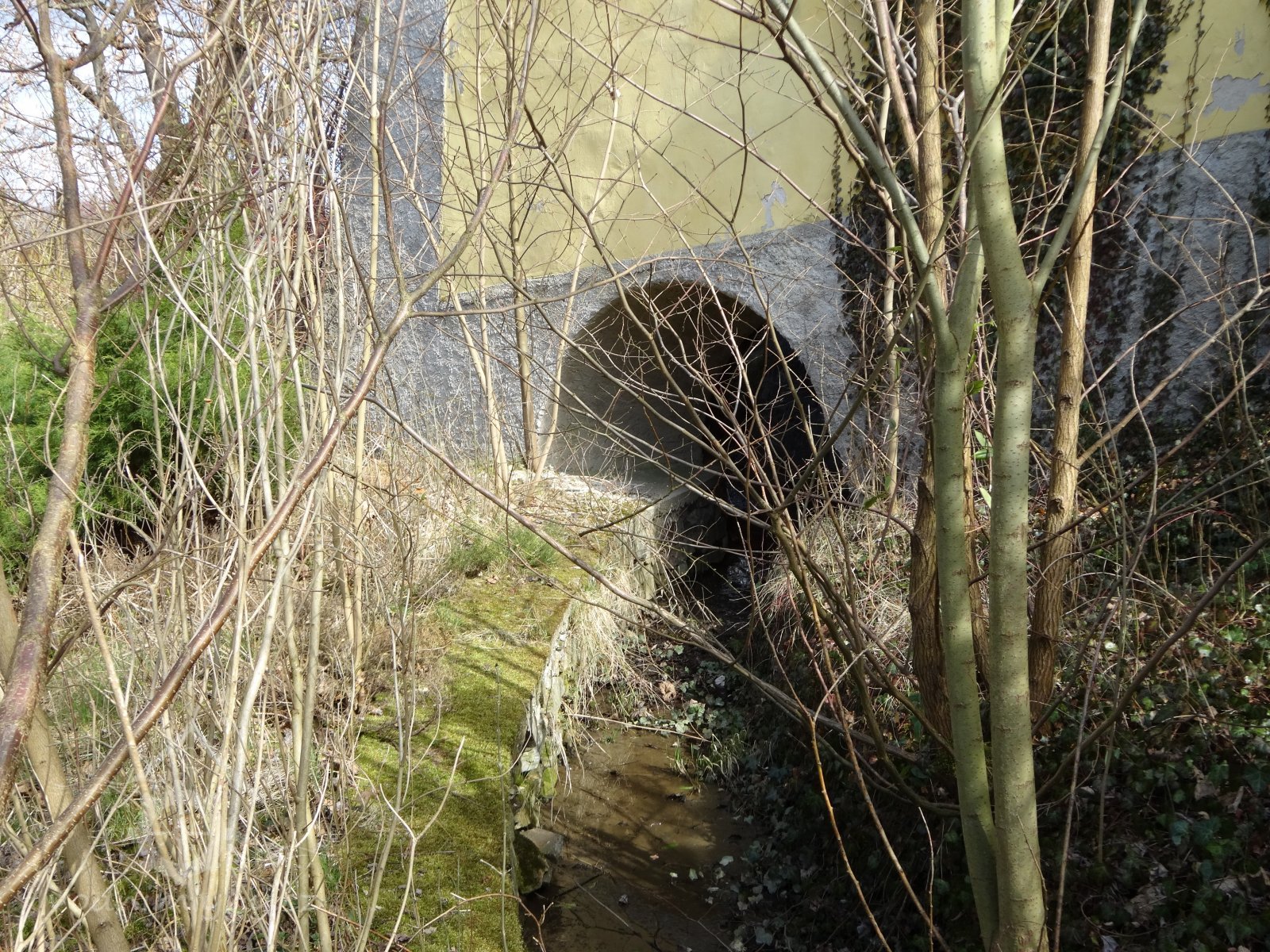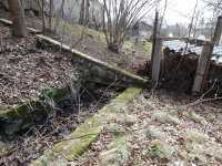 Voda z Černovického potoka procházela přes stavidlo a rourou v hrázi do žlabu. V posledním období betonového. Dále pak na vantroky a kola. Odtokovou strouhou pak zpět do potoka. Část vody ze žlabu byla odebírána do vinopalmy a pro zámek. Zajímavostí je, že žlab vedl rohem budovy zámky (viz. foto)