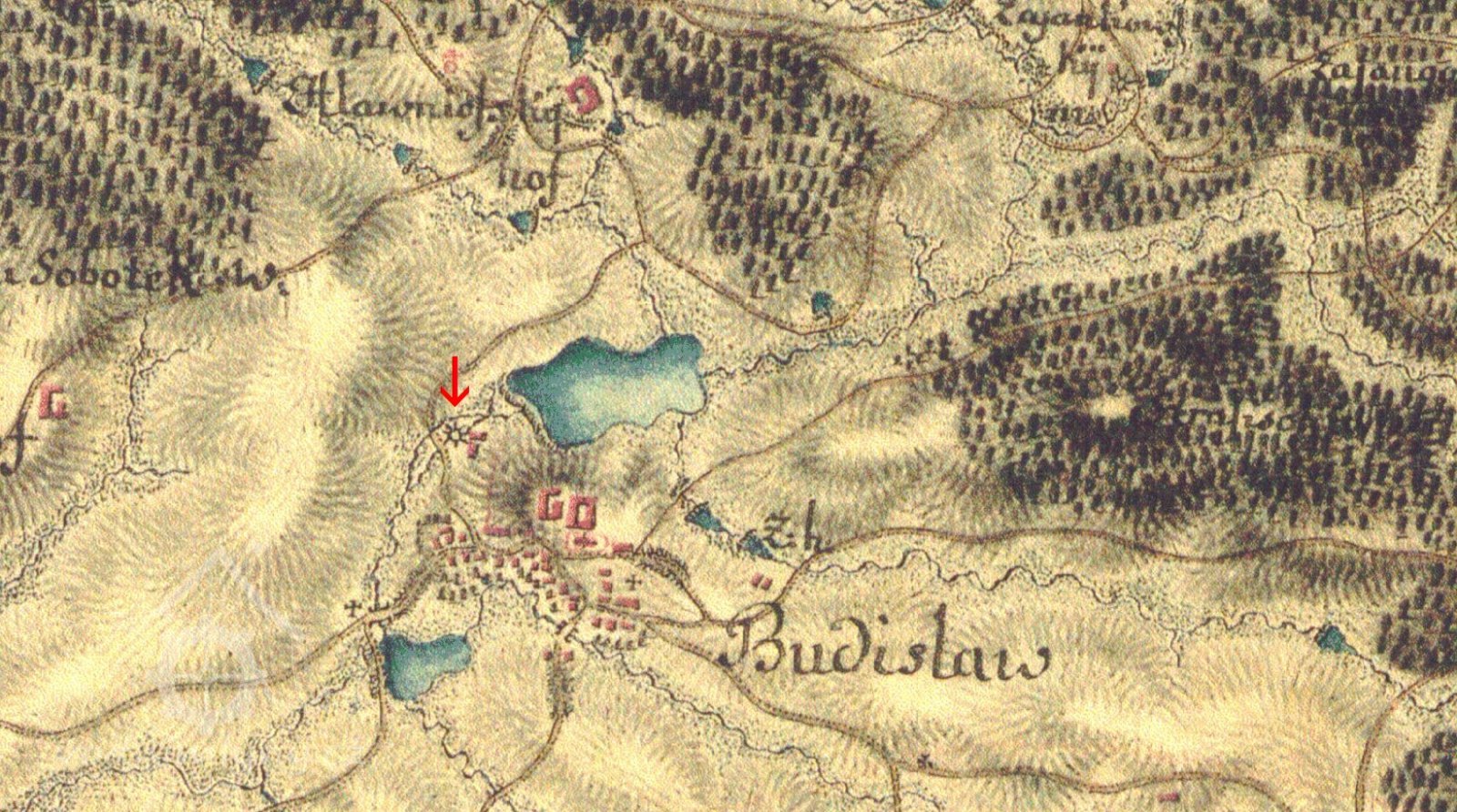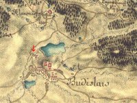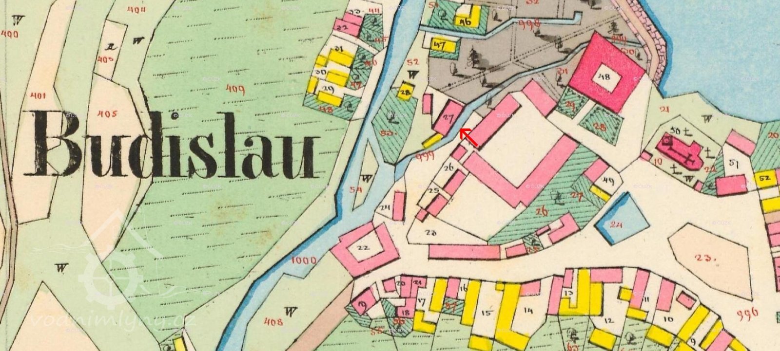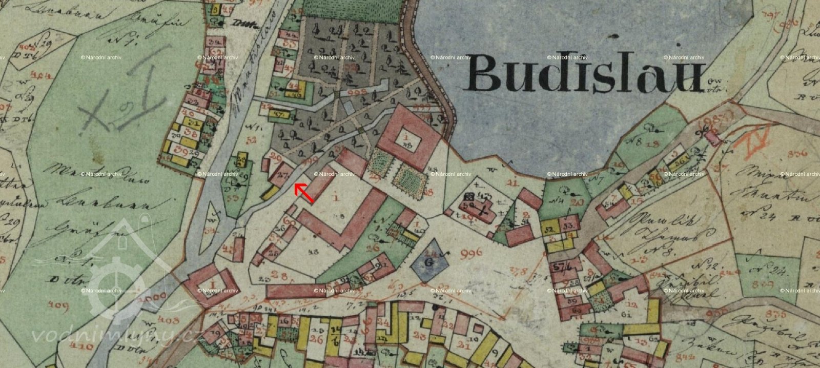 Pod hrází rybníka a v těsné blízkosti samotného zámku v Budislavi byl podle záznamů matrik fary v Budislavi již v sedmdesátých letech 17. století mlýn. Matriky patří k jedněm z nejstarších ve velkém okolí. Jak mlýn vypadal lze jen spekulovat. V současnosti dávají představu o mlýnici jen mohutný roh zdi.