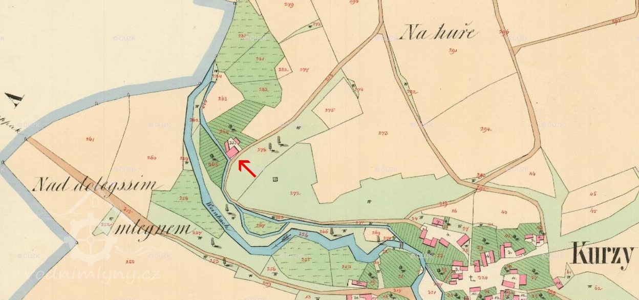 PopisV roce 1930 měl mlýn 1 kolo na vrchní pohon, hltnost 0,17 m3/s, spád 5,3 m, výkon 7,8 HP-