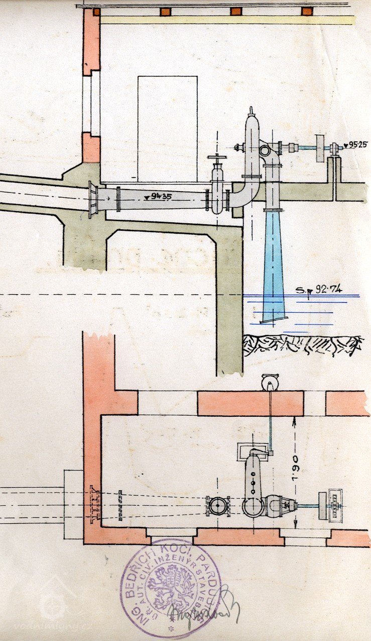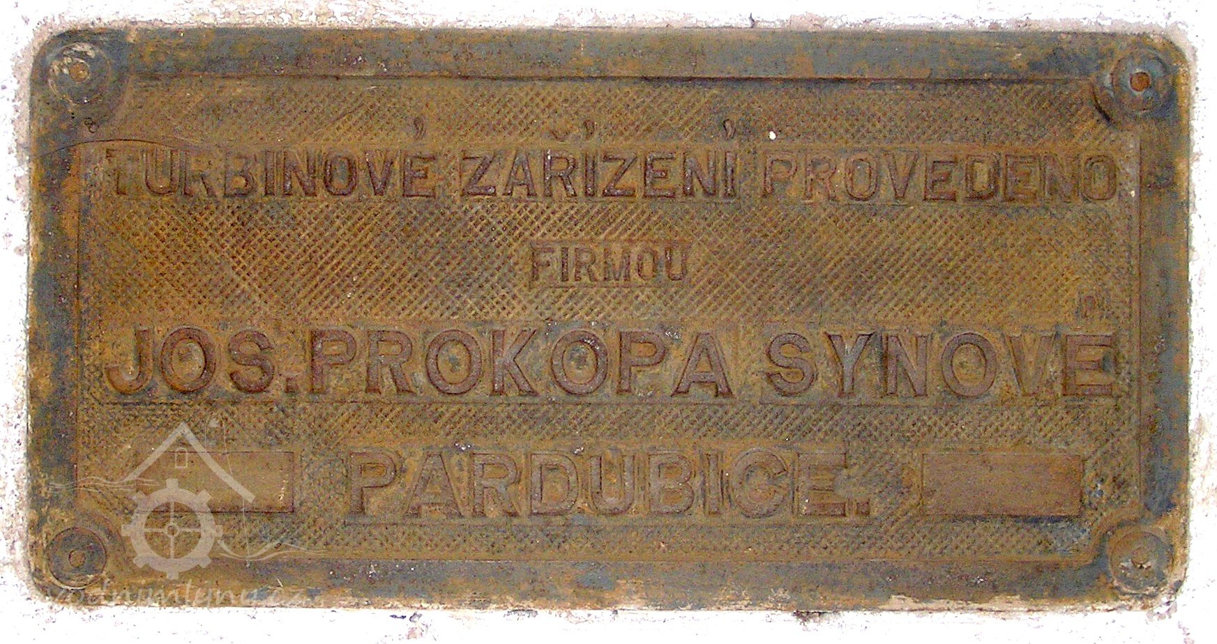 PopisV roce 1926 obě vodní kola nahradila Francisova turbína s horizontální hřídelí o výkonu 5 HP (provedla firma Josefa Prokopa synové).