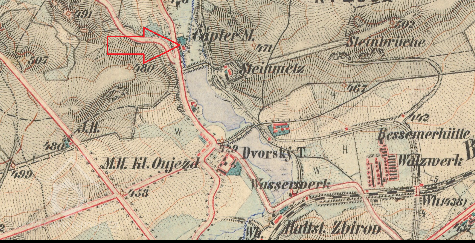 2 km jižně od kostela sv. Mikuláše ve Zbirohu