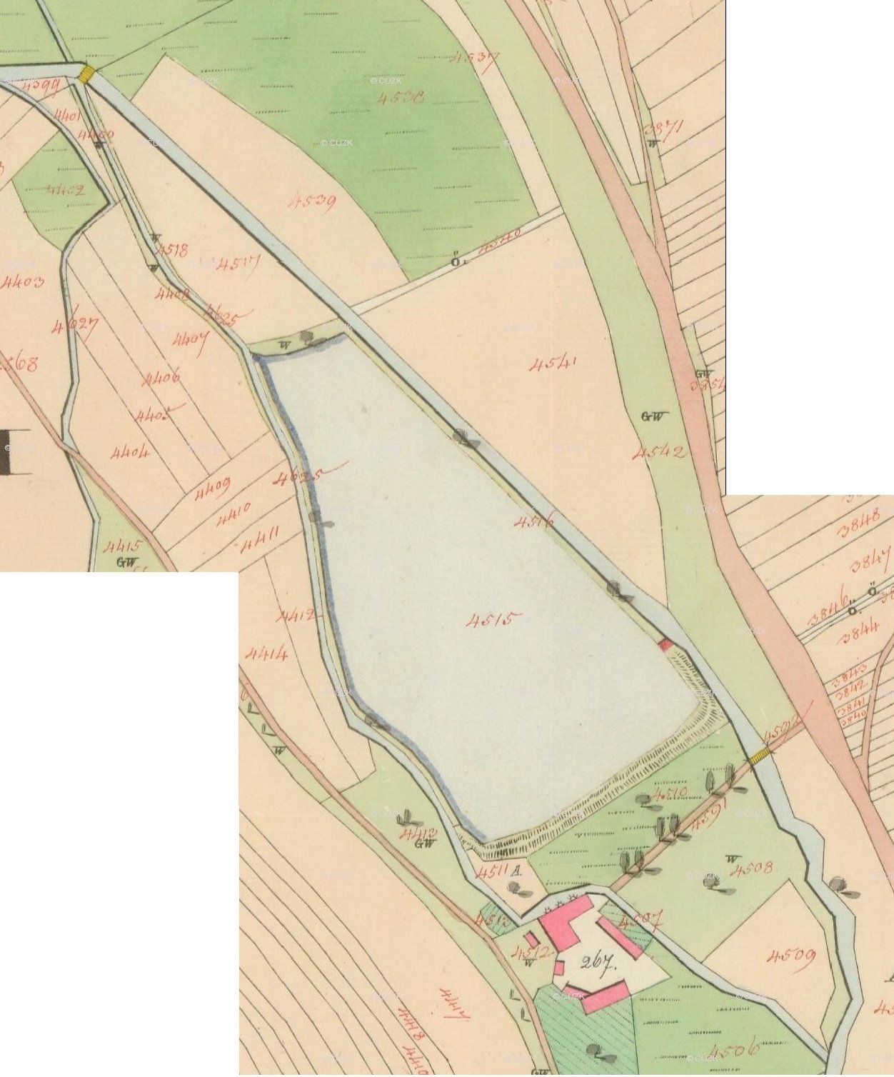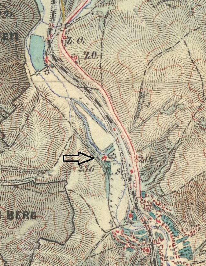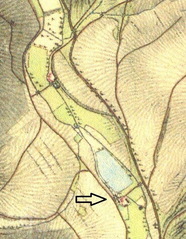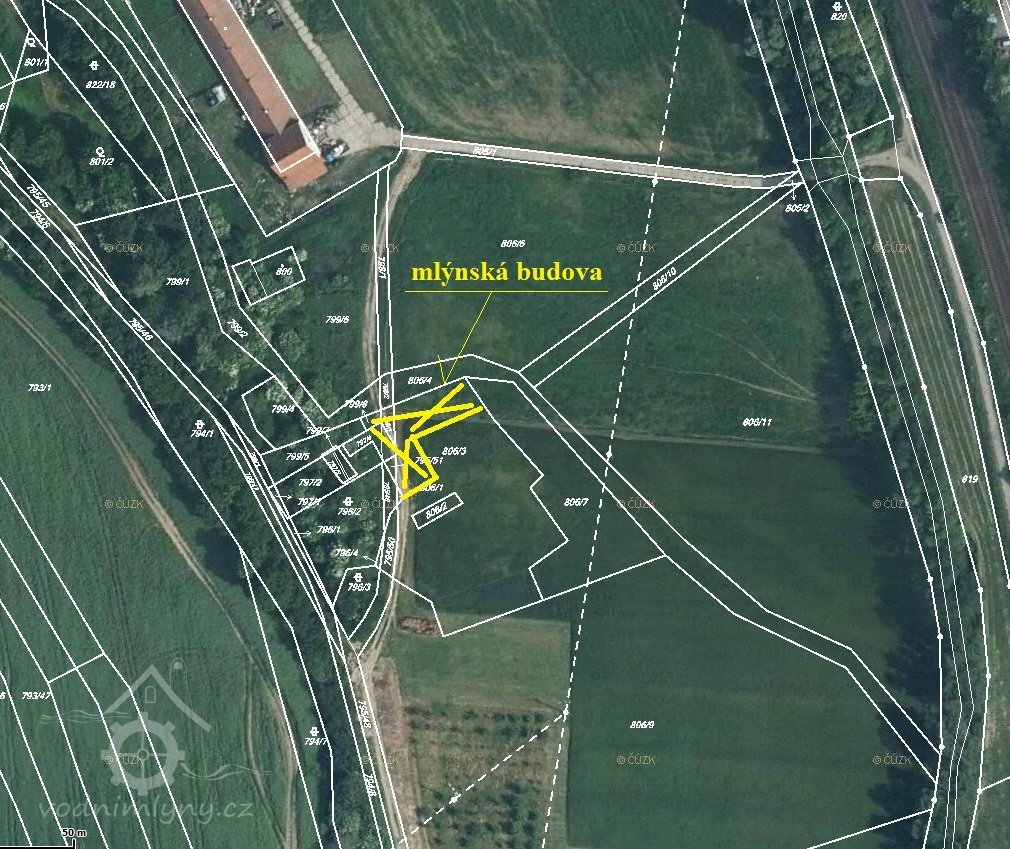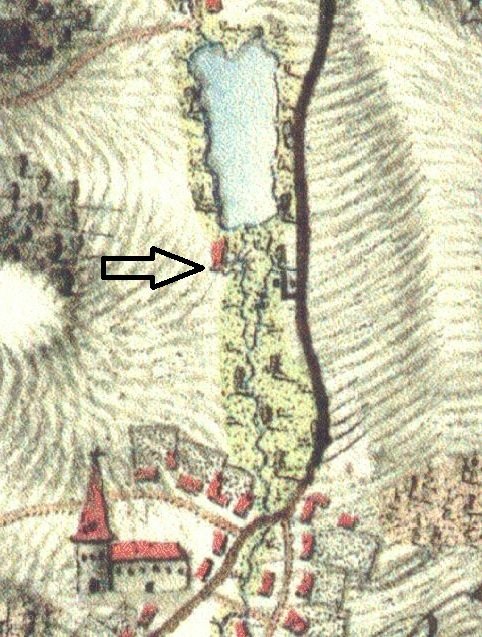 Odběr vody z potoka ve stejném místě, kde do potoka ústila odpadní strouha výše umístěného mlýna. Nad mlýnem původně rybník, který ale nesouvisel s přívodem vody k mlýnu.