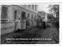 s. 7 - V obci také v té době (pozn. MŠr. - za první republiky) fungovaly dva mlýny, Pěnicův a Rackův mlýn. V Pěnicově mlýně probíhaly letní slavnosti a celé hospodářství bylo na vysoké úrovni. Avšak Pěnicův mlýn neunesl konkurenci zmodernizovaného Rackova mlýna, začal ztrácet zákazníky a během druhé světové války zanikl. Rackův nově přestavěný mlýn byl v celém okolí nejmodernější a dobře prosperující. Po roce 1948 však nastaly určité těžkosti a komplikace v otázce vedení mlýna a na počátku 50. let byl mlýn násilně zrušen.